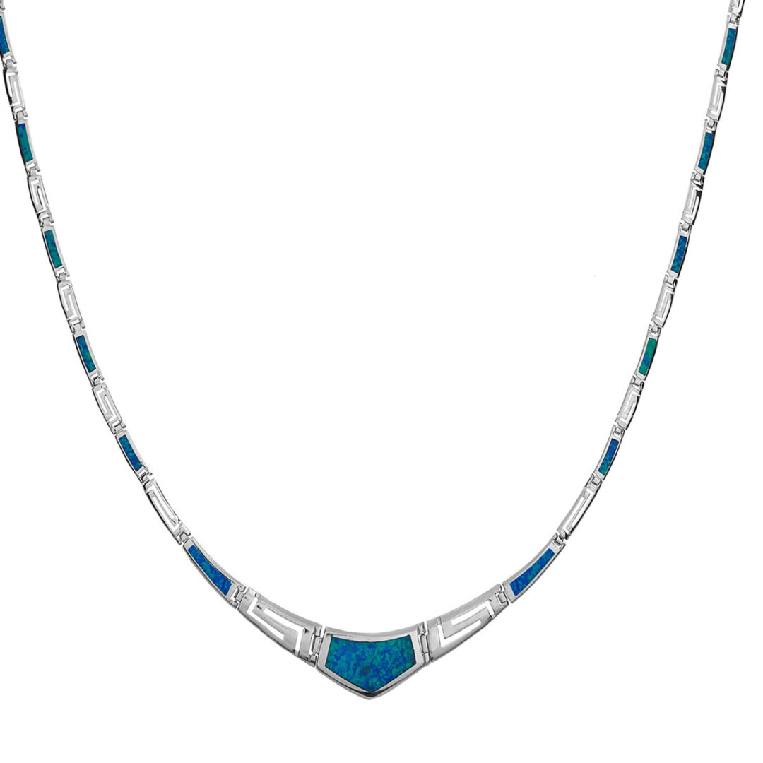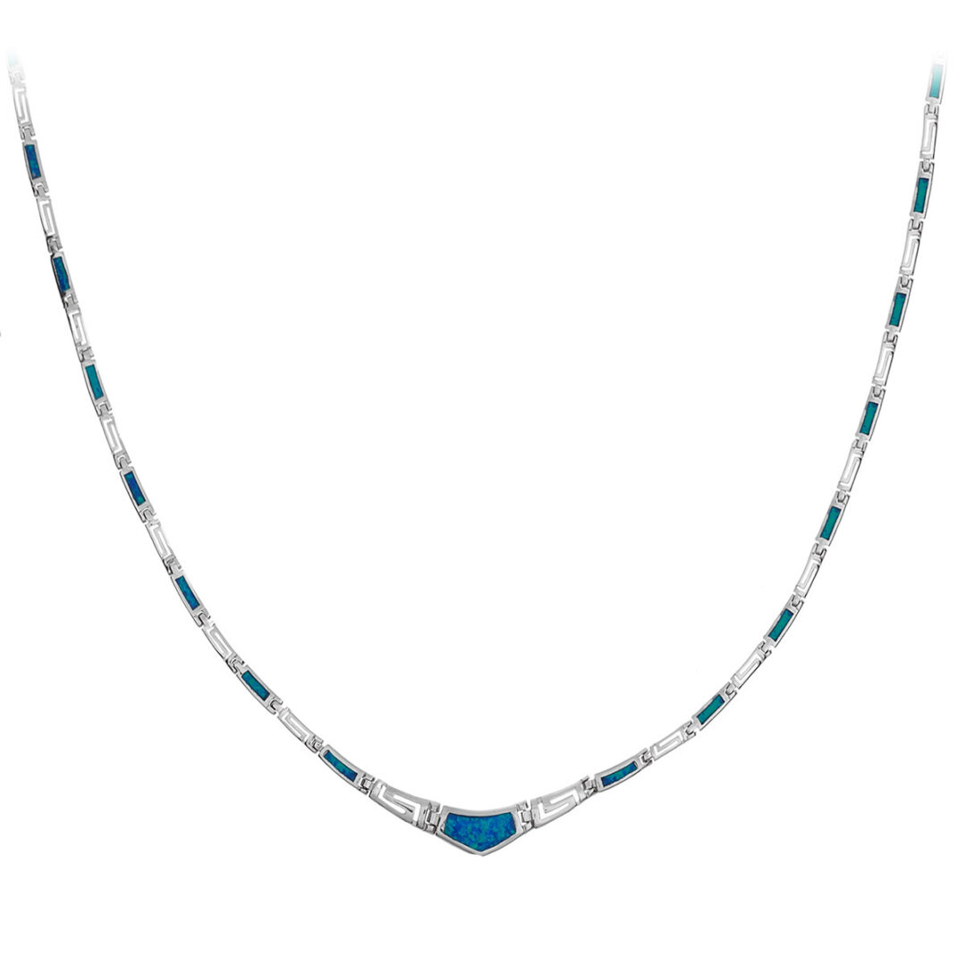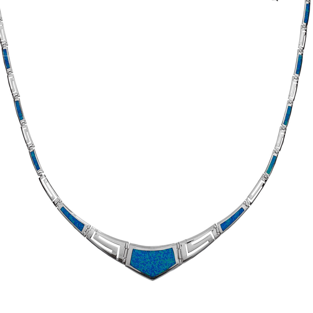 Blue Opal Greek Key Necklace – Sterling Silver