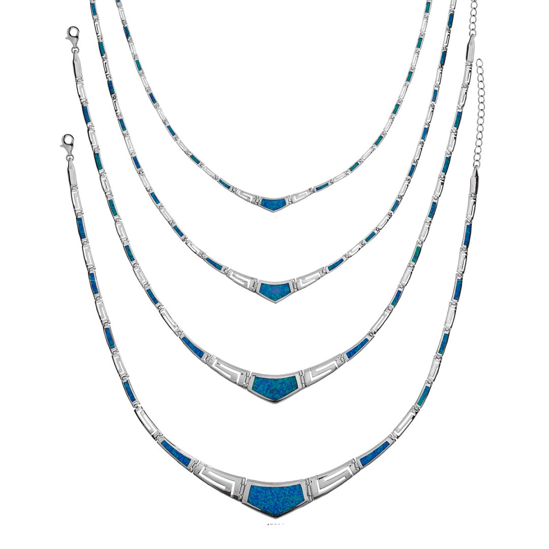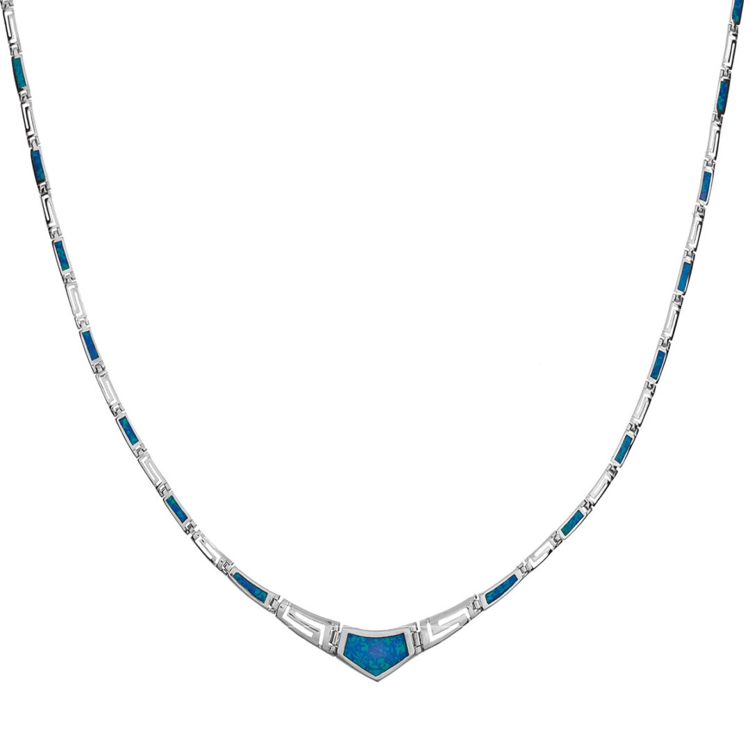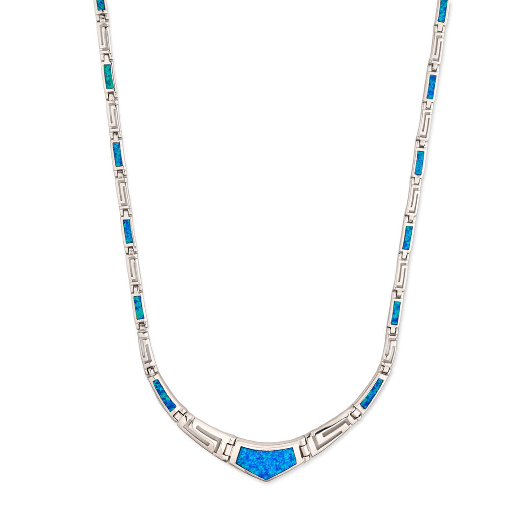 Blue Opal Greek Key Necklace – Sterling Silver