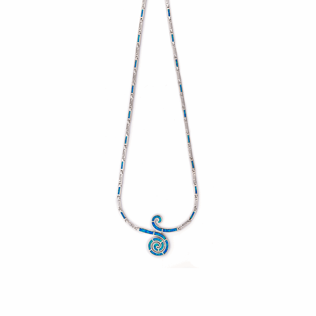 Blue Opal Spiral Necklace – 925 Sterling Silver