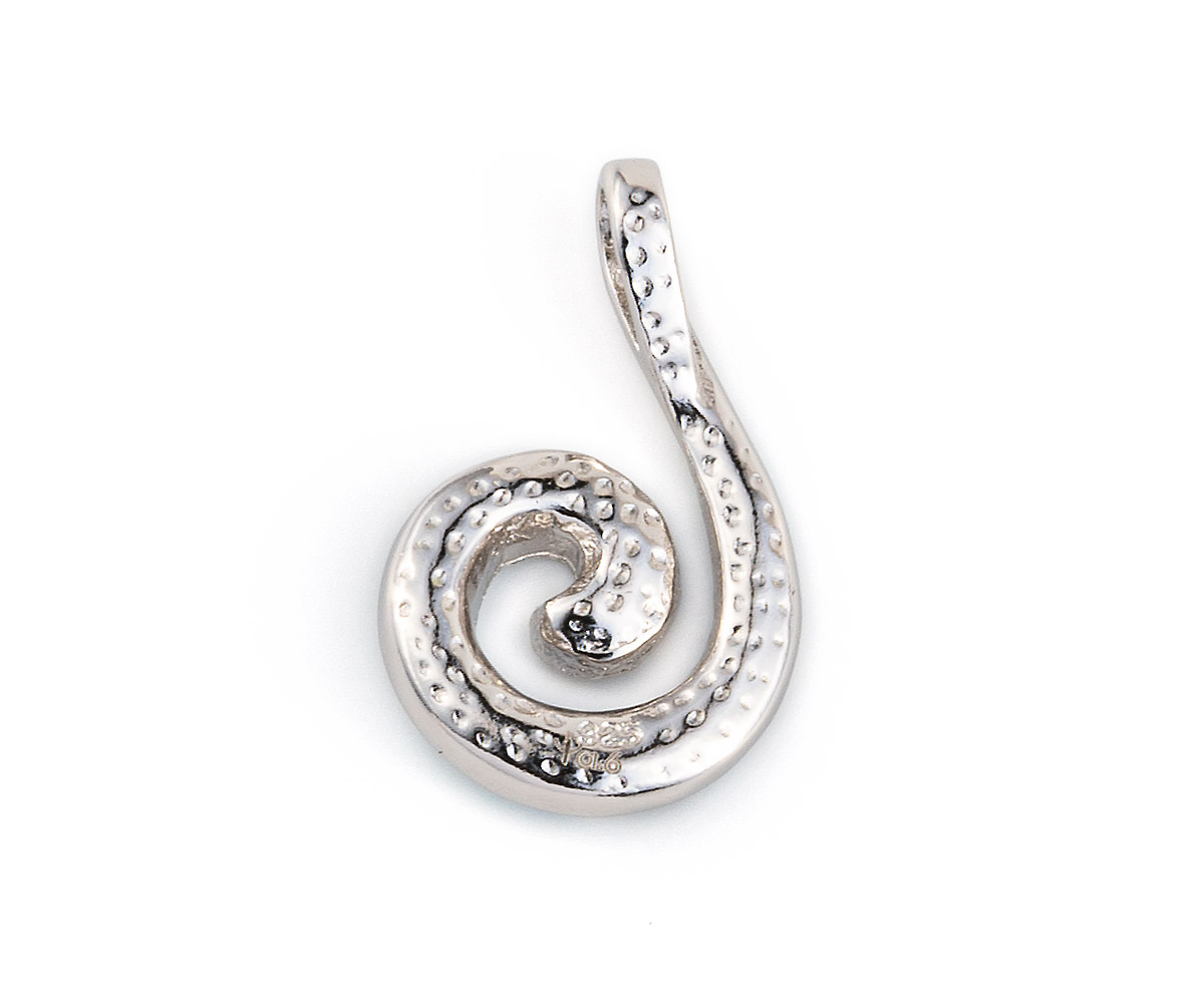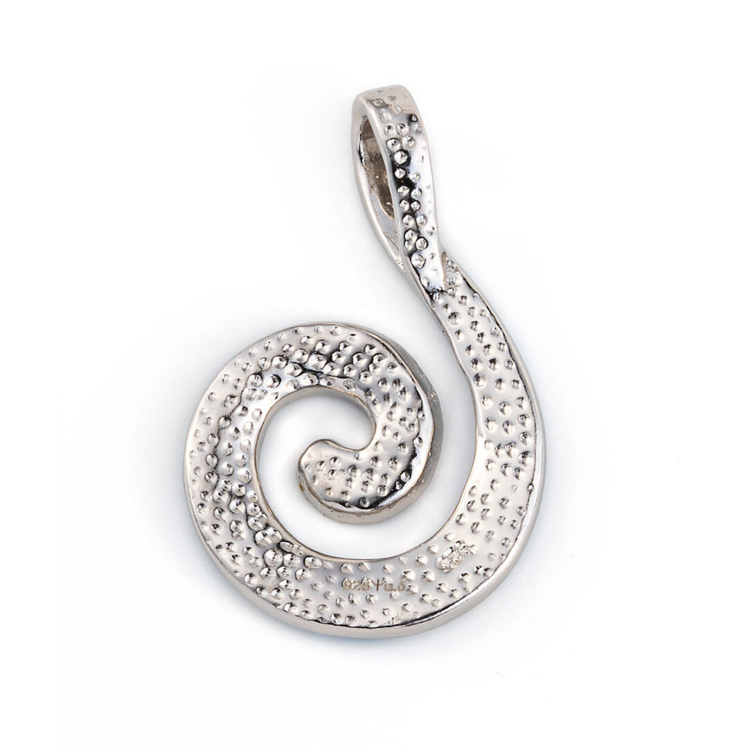 A sterling silver pendant featuring the spiral symbol with a blue opal stone.