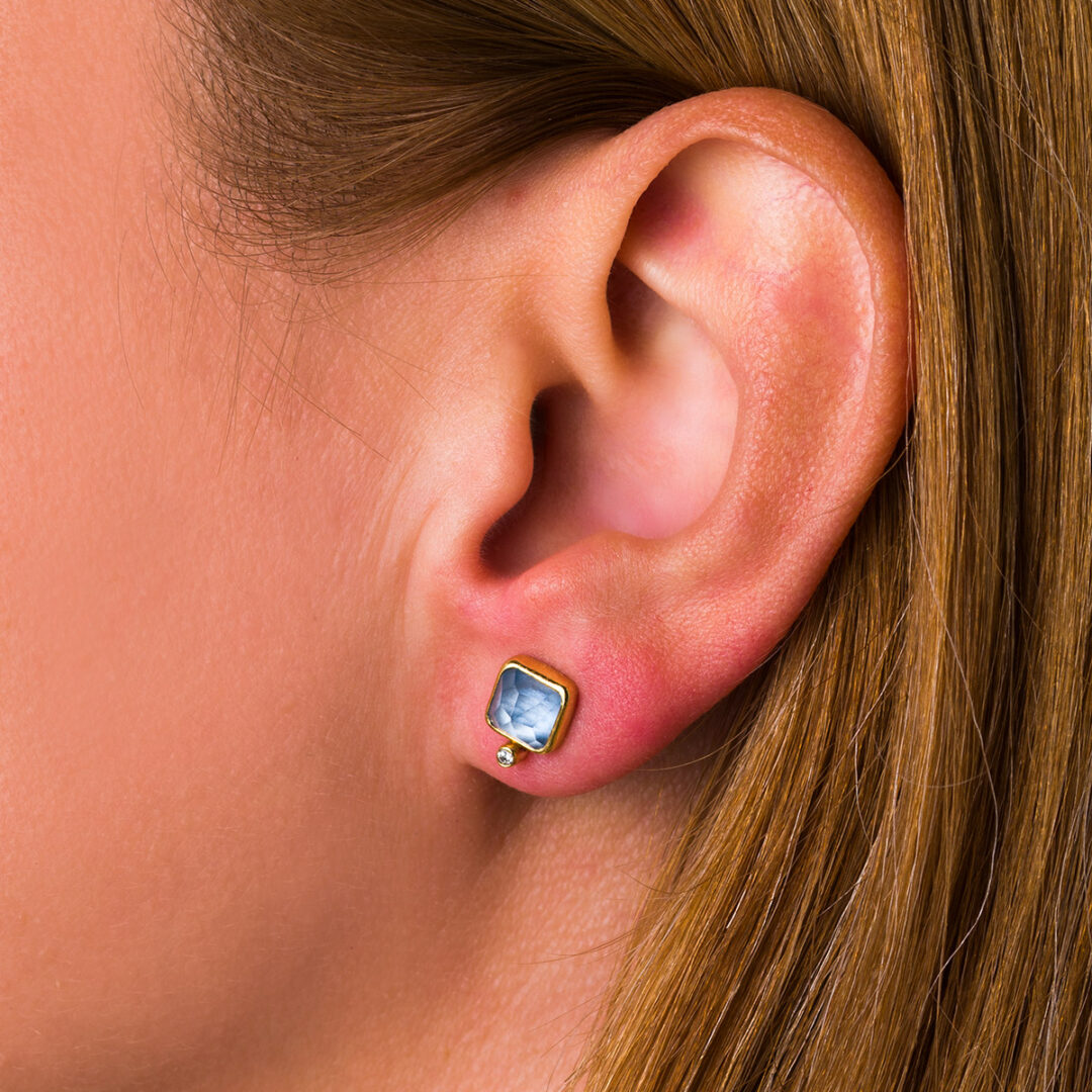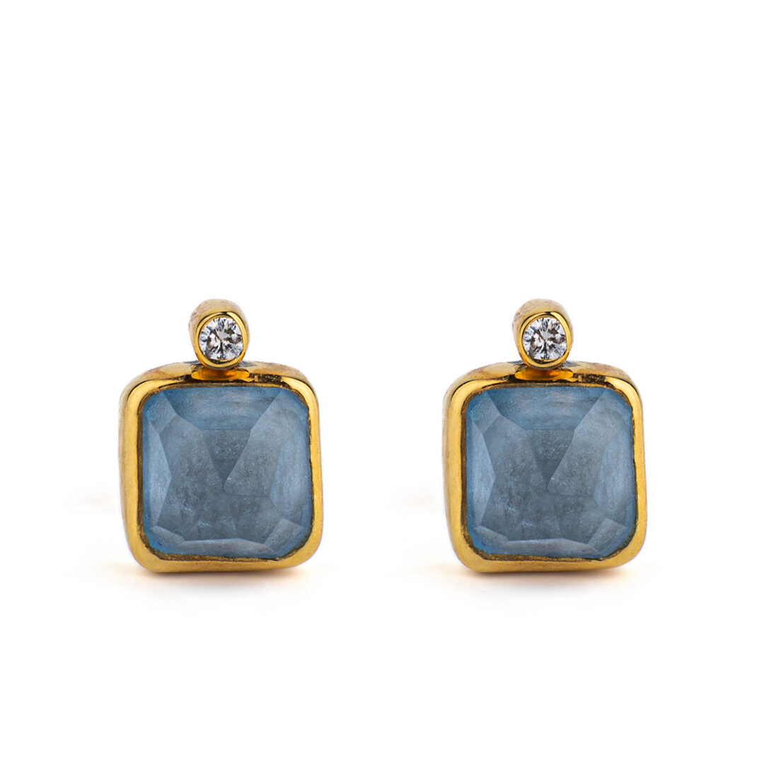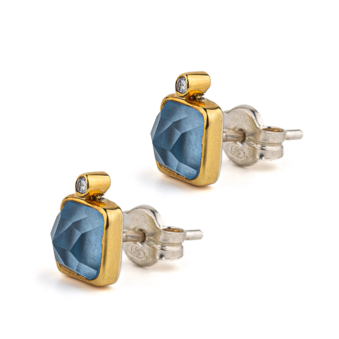 Blue Topaz Earrings – 18K Gold and Sterling Silver
