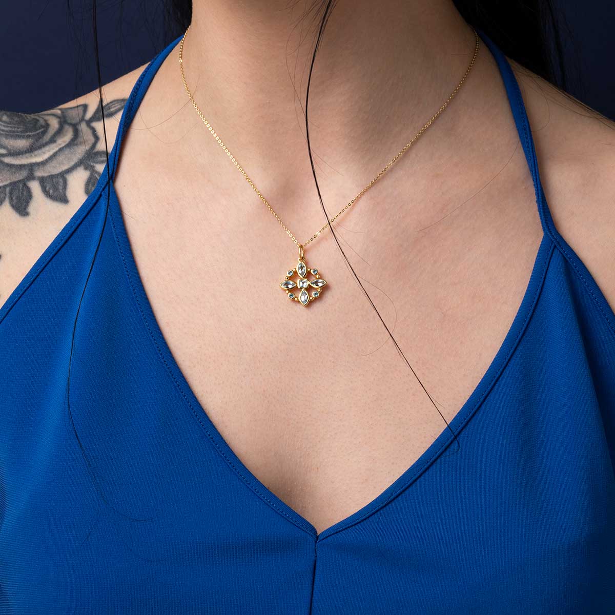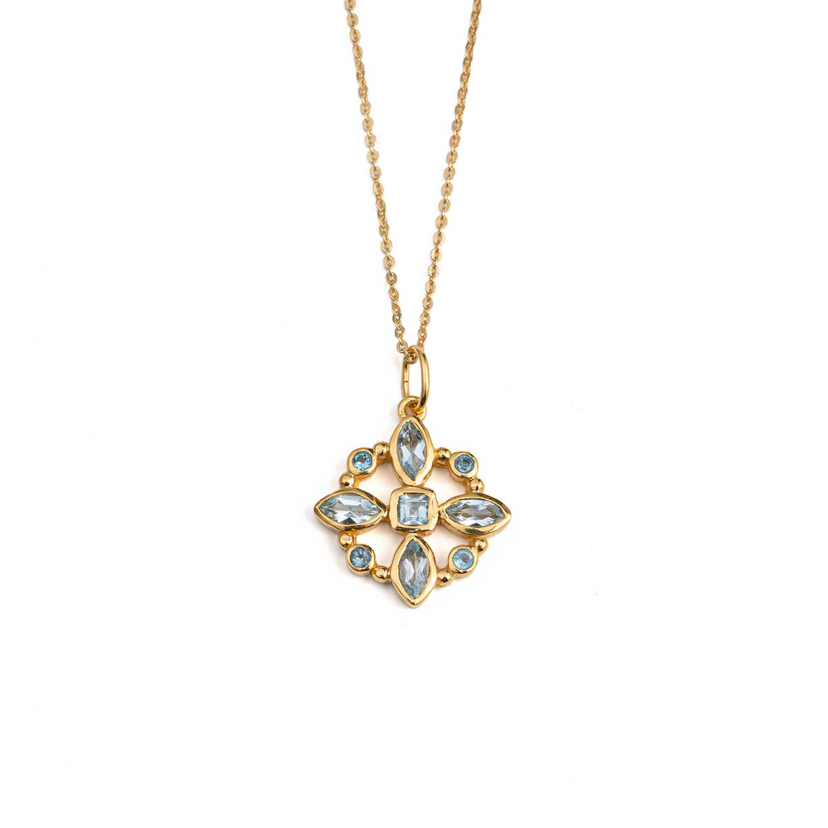Blue Topaz Flower Necklace – 925 Sterling Silver and Gold Plated
