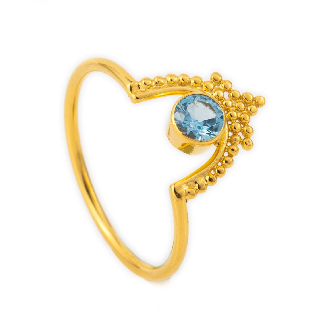Blue Topaz Ring in Sterling Silver Gold Plated