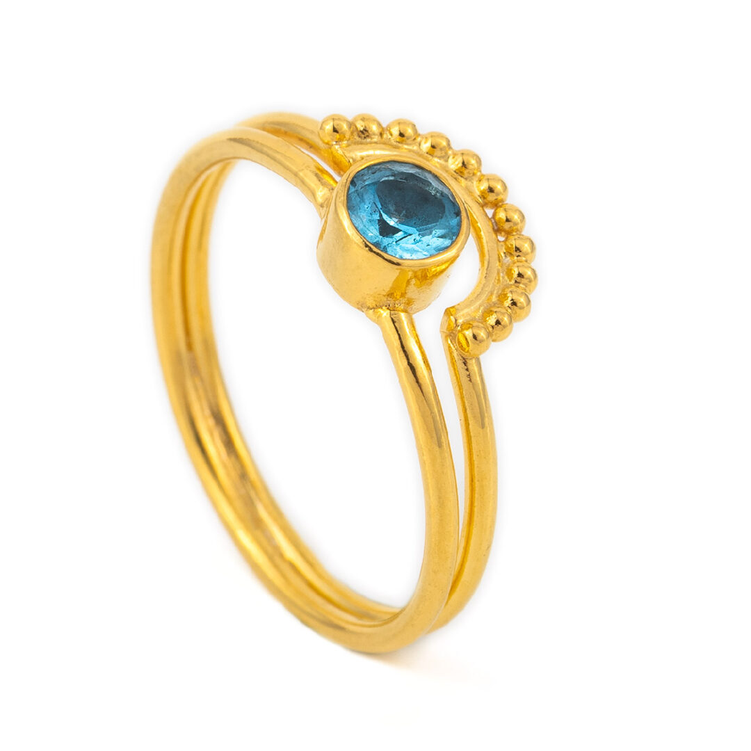 Blue Topaz Ring in Sterling Silver Gold Plated