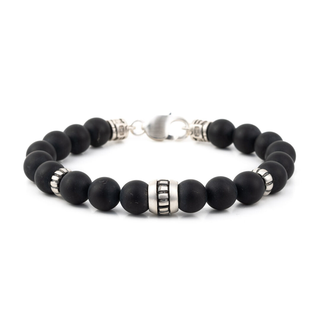Bracelet with Black Onyx Beads – 925 Sterling Silver