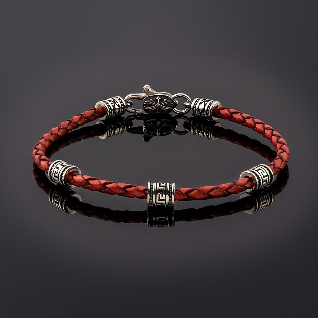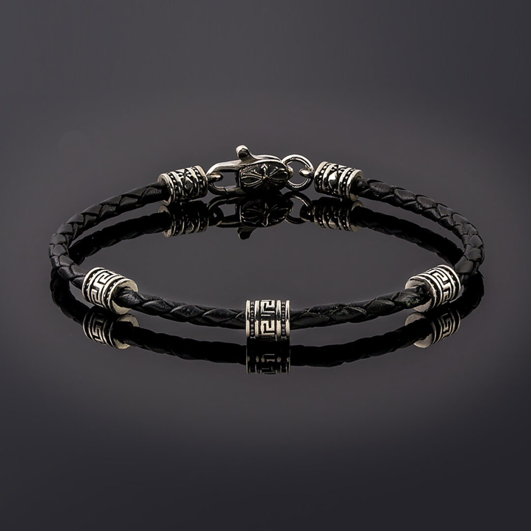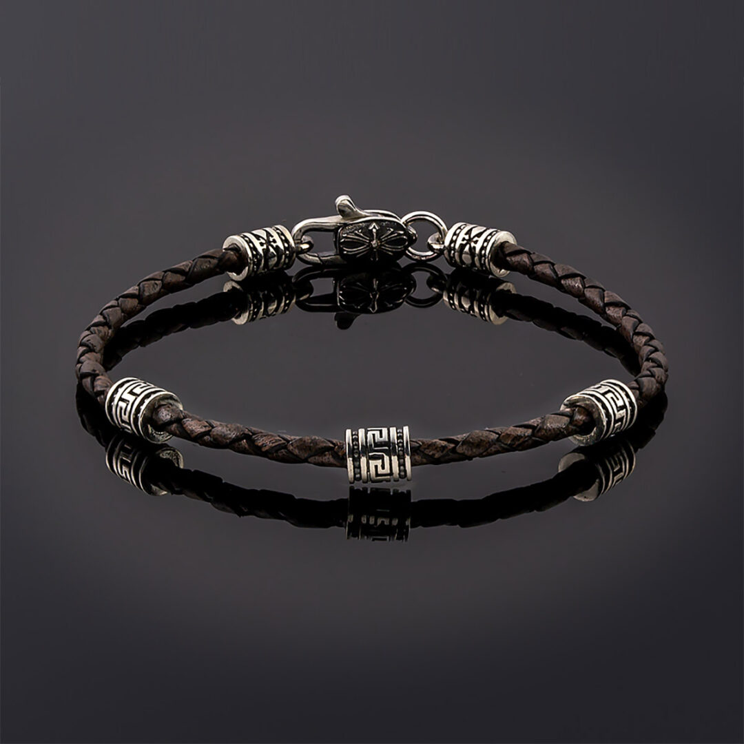 Bracelet with Sterling Silver with greek motifs and braided genuine leather