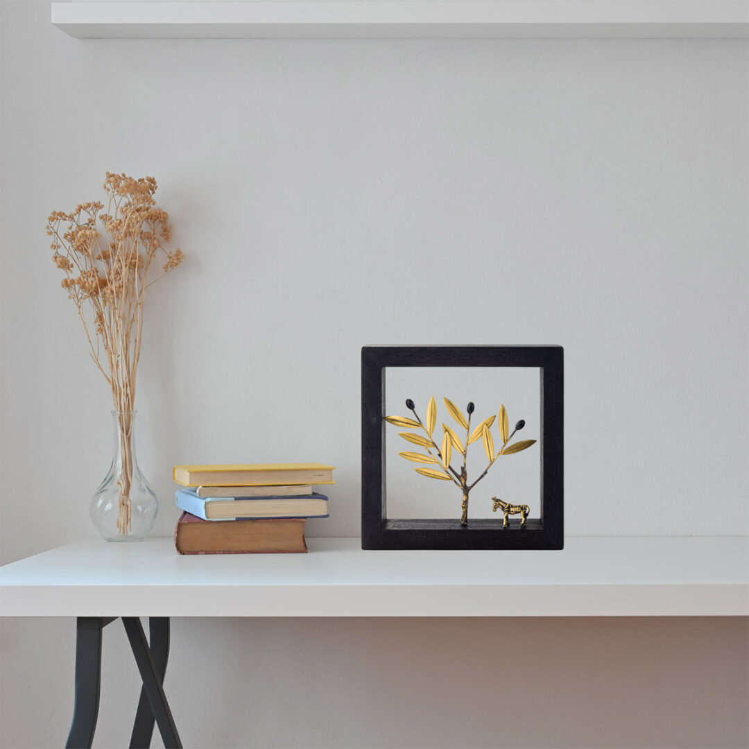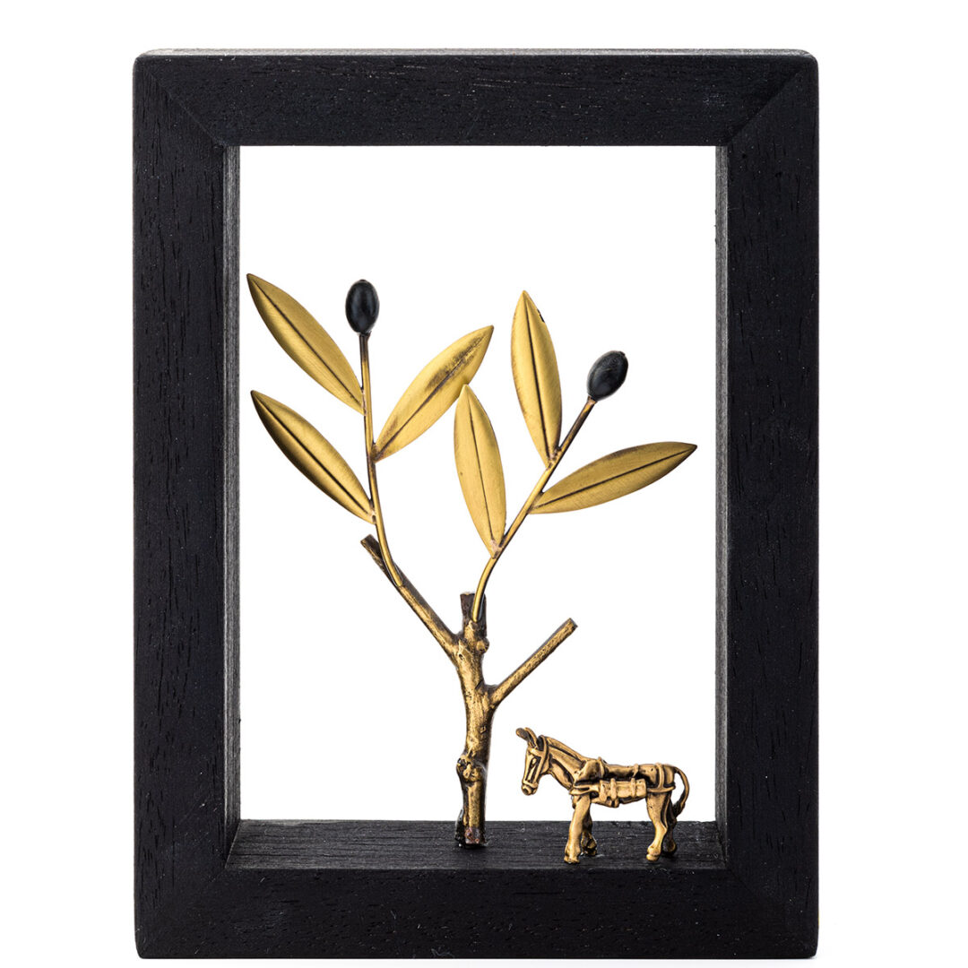 Bronze Sculpture The donkey and the olive tree – Wood Frame