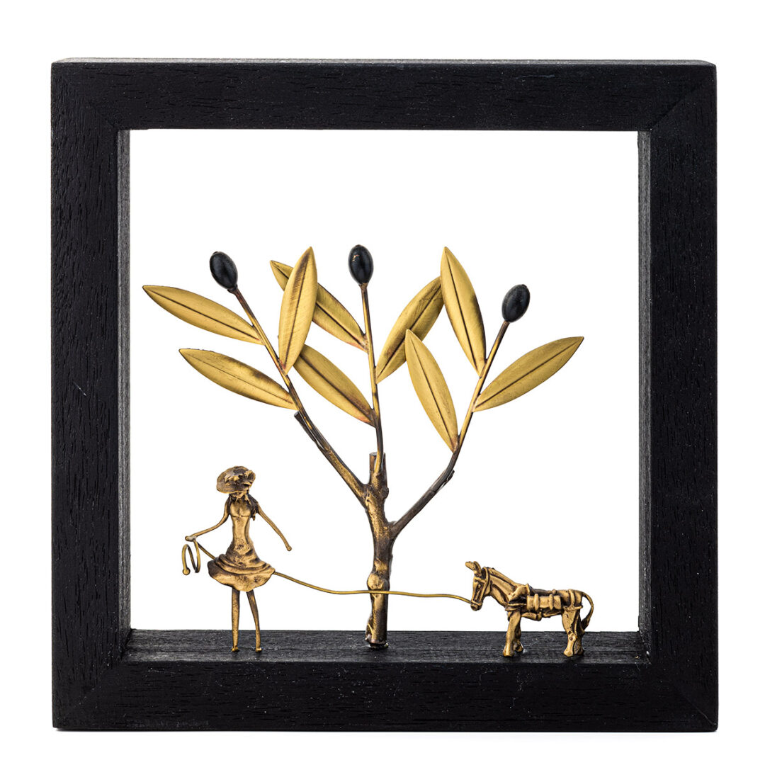 Bronze Sculpture The girl and the donkey – Wood Art Frame