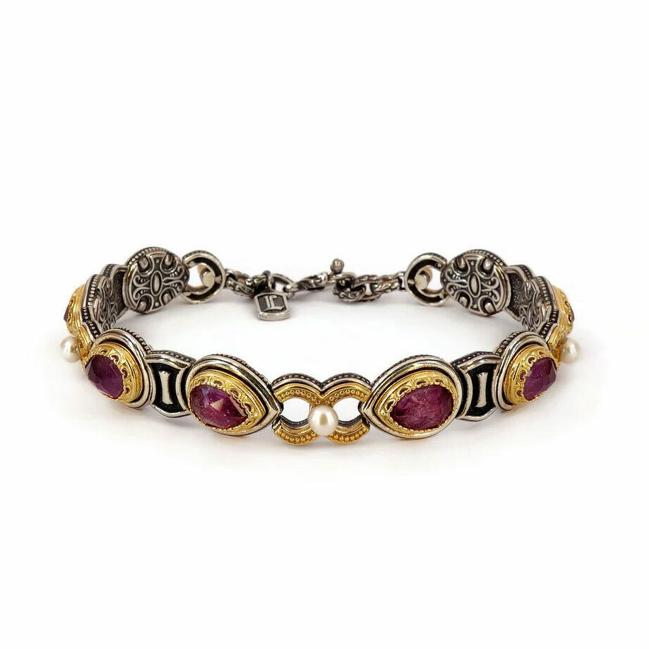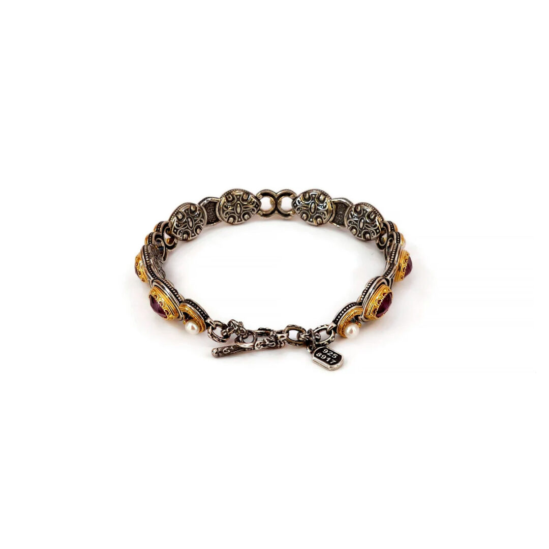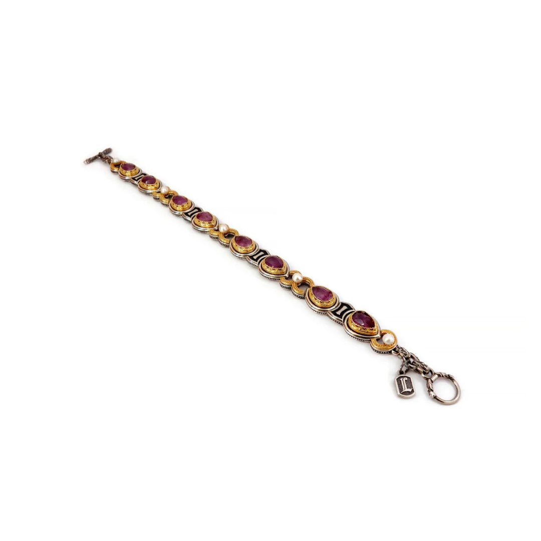 Byzantine Bracelet with Doublet Ruby and Natural Pearl Gemstone