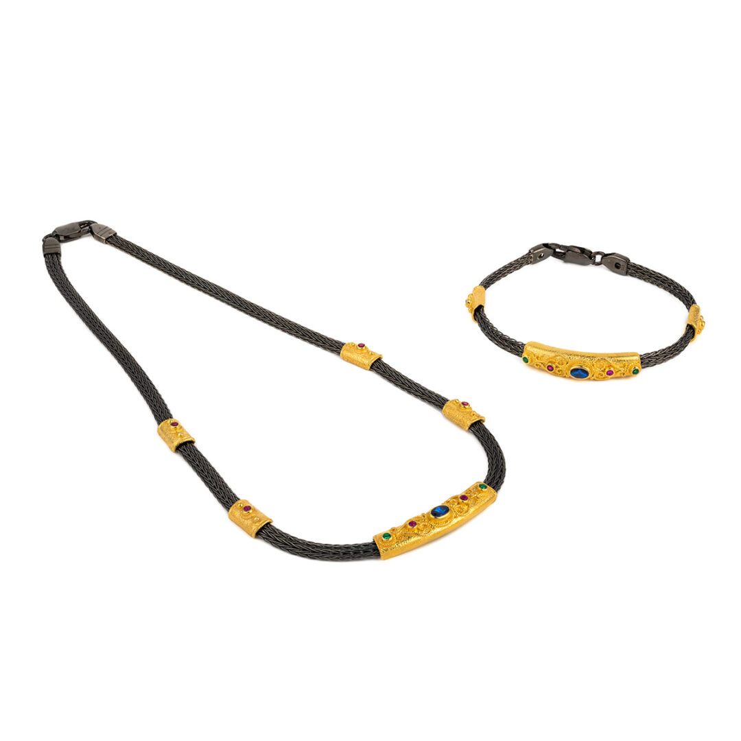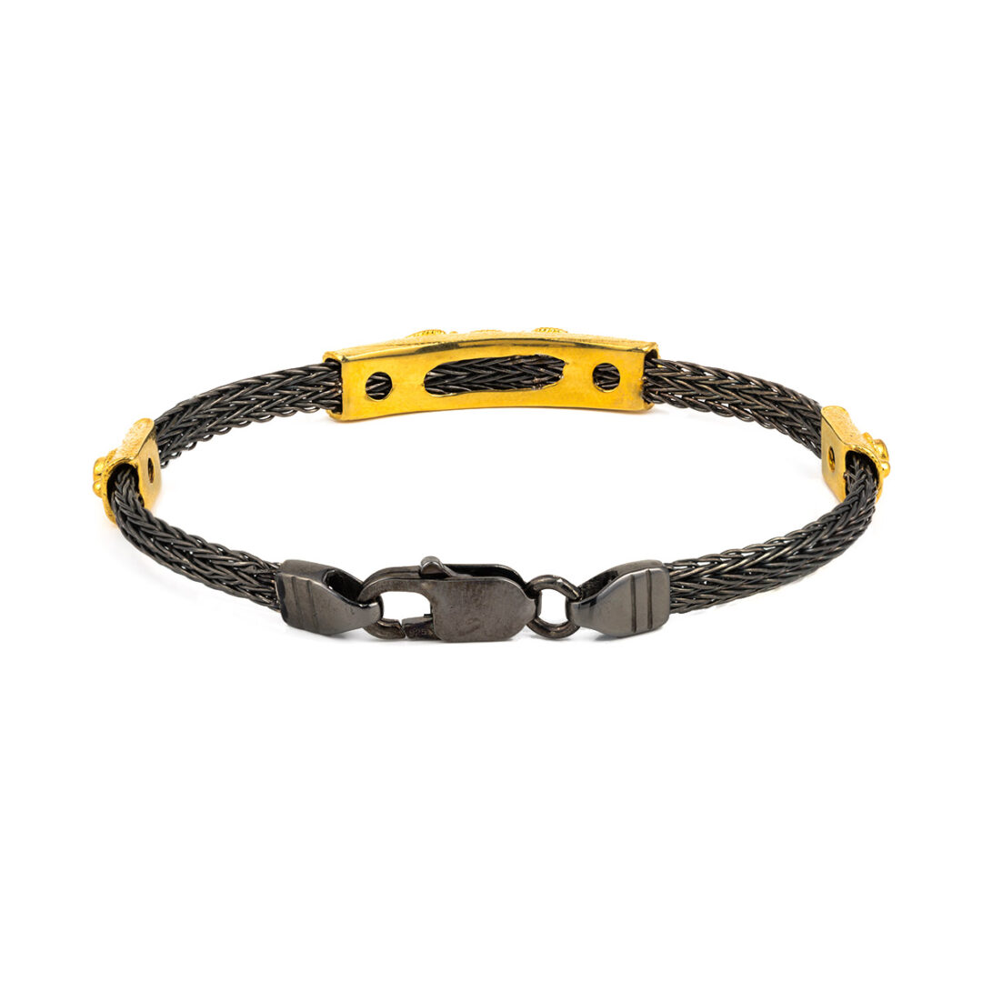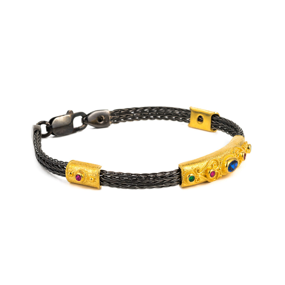 This bracelet is inspired by the Byzantine Historical period respecting Greek traditional art. A unique and elegant bracelet made in 925⁰ sterling silver and gold plated, decorated with Swarovski crystals.