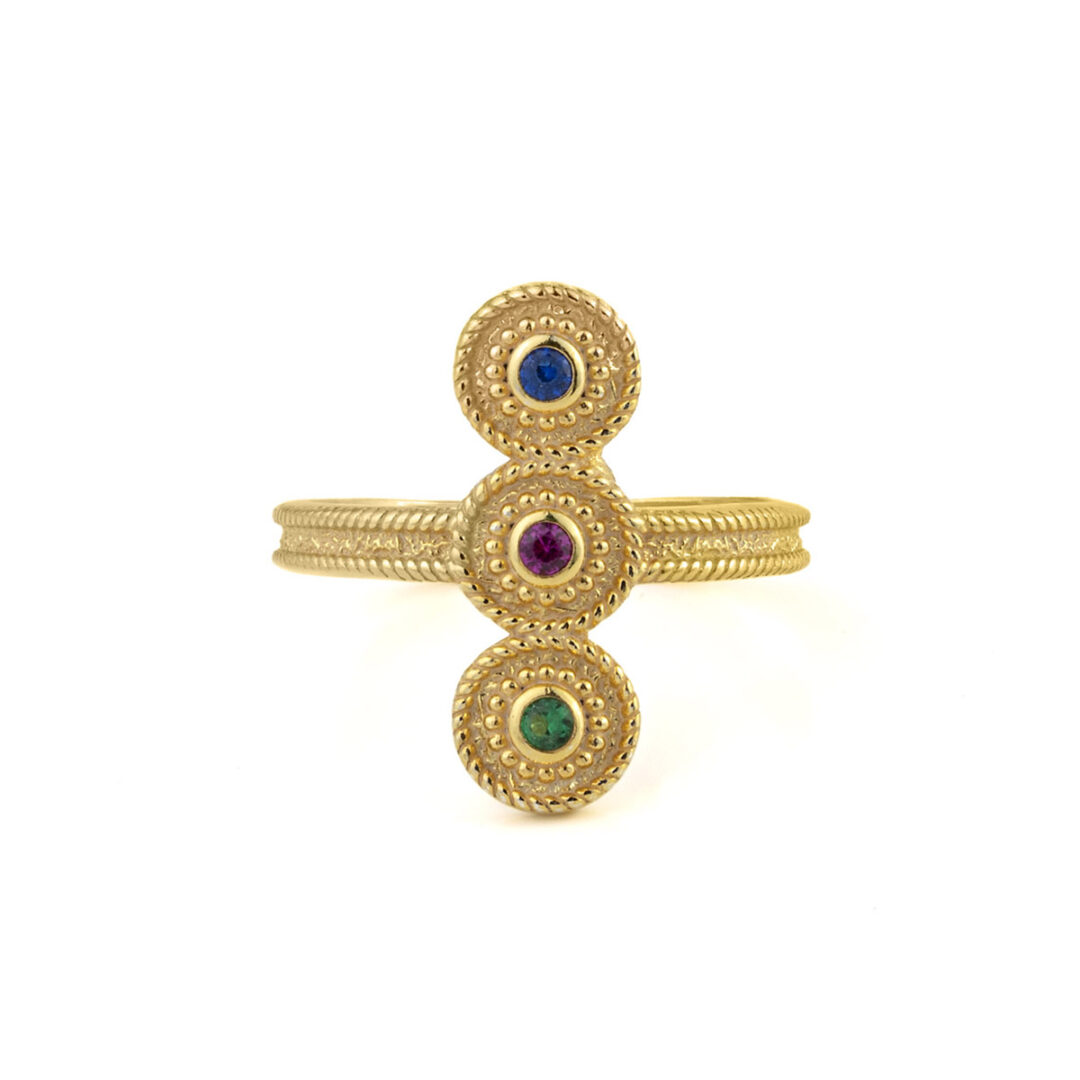 Byzantine Circles Ring with Stones – 925 Sterling Silver and Gold Plated