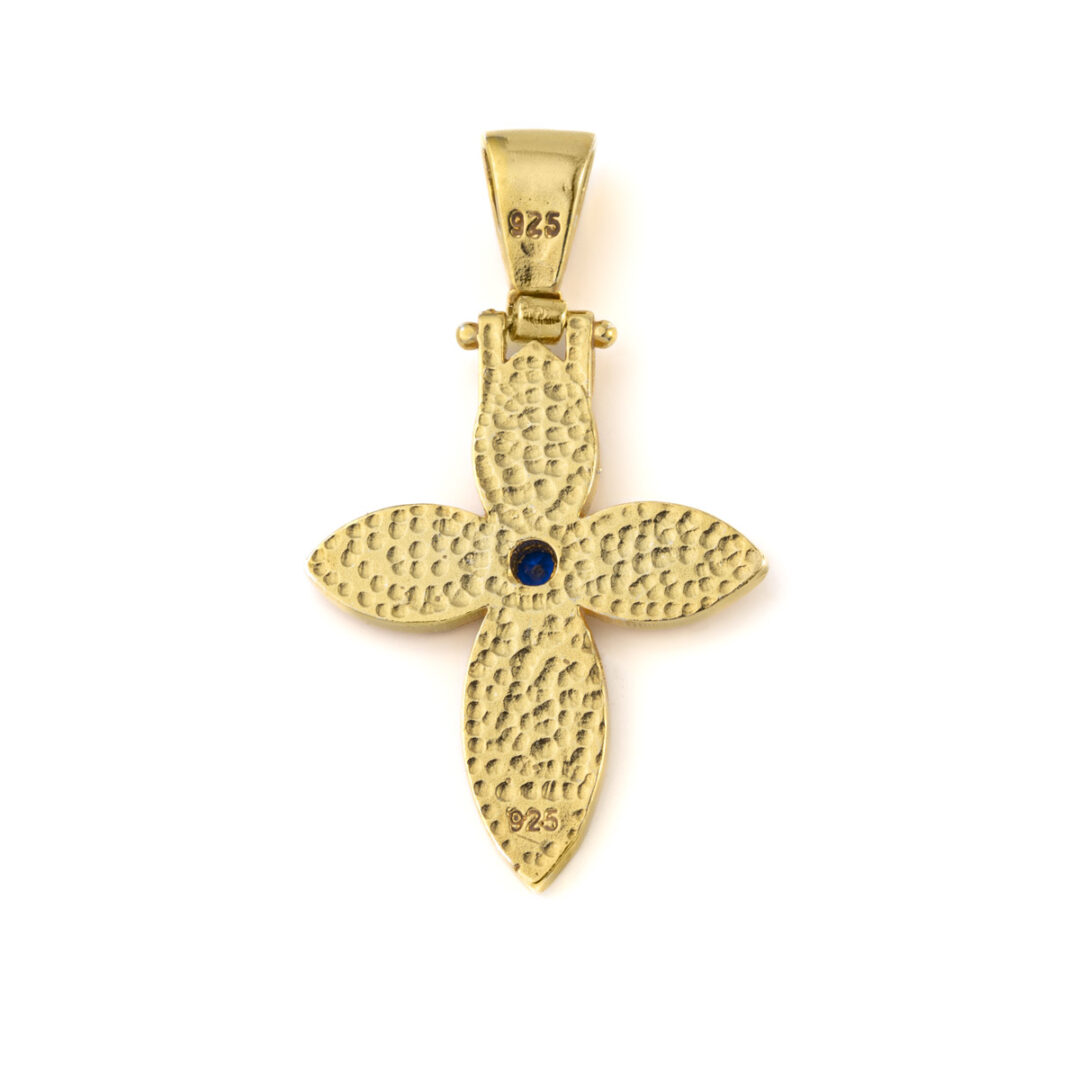 Byzantine Cross with Blue Stone – 925 Sterling Silver Gold Plated