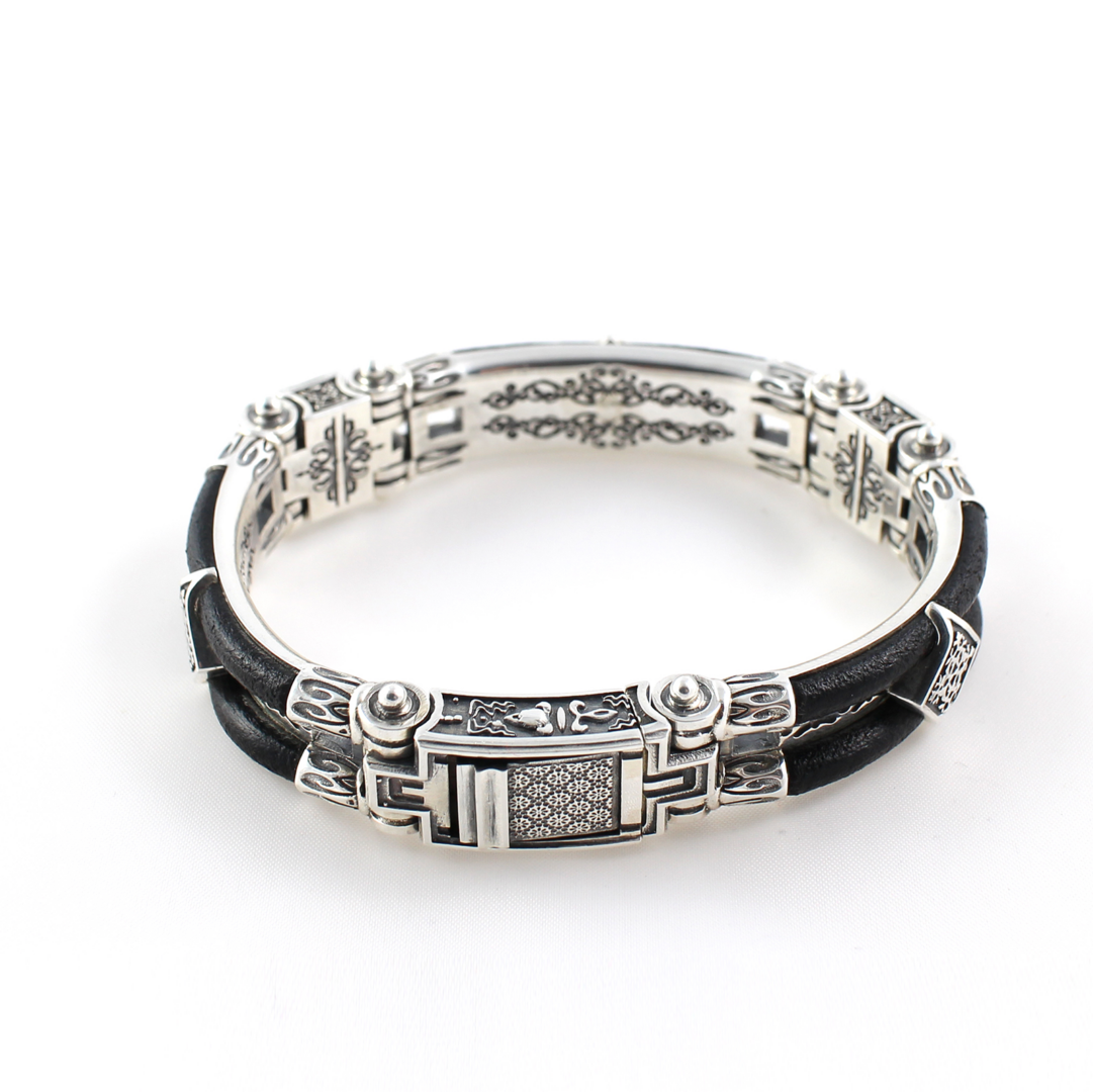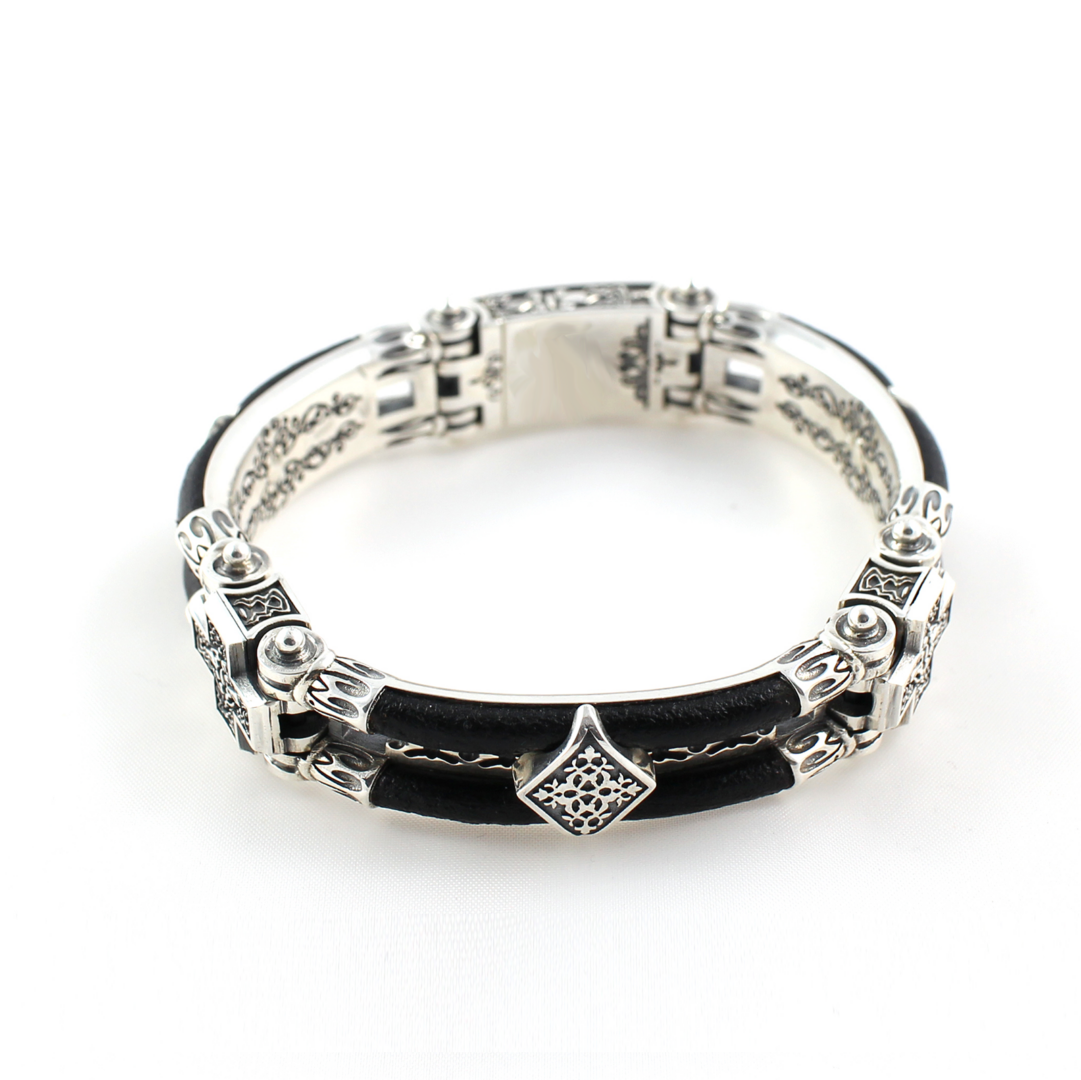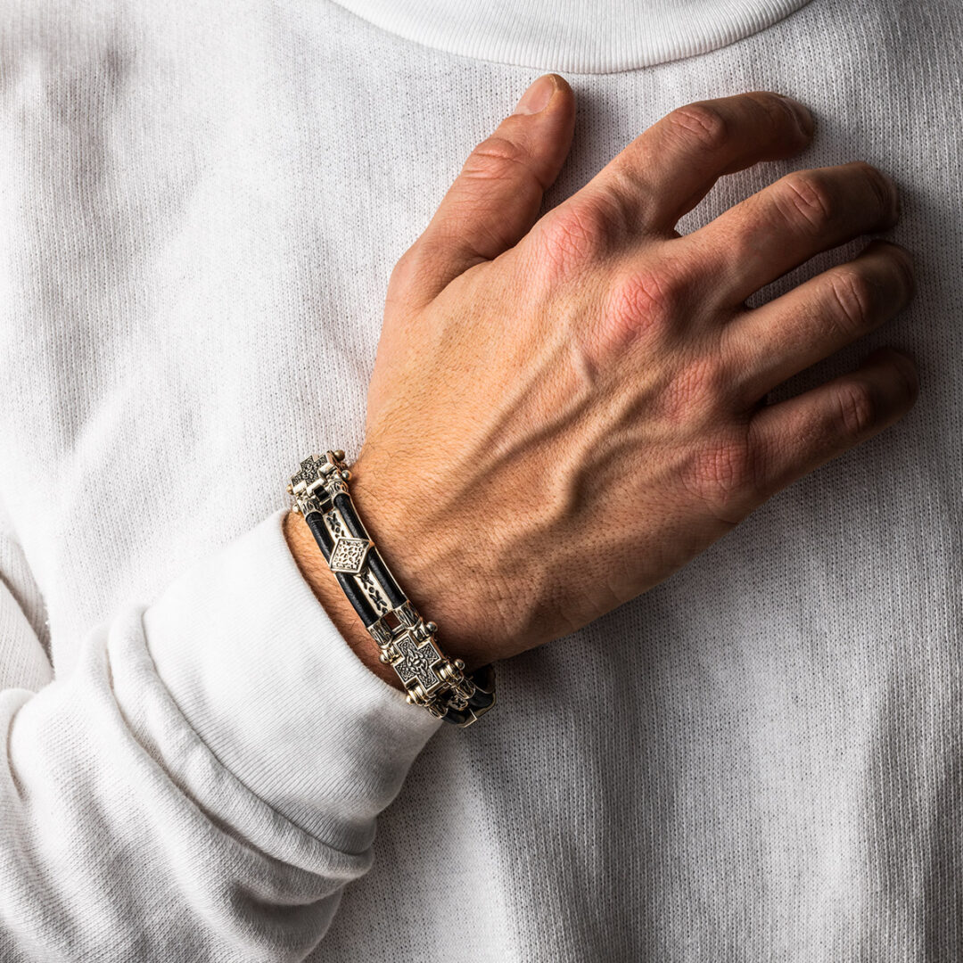 Byzantine Cross Leather Bracelet – Sterling Silver Yianni Jewelry