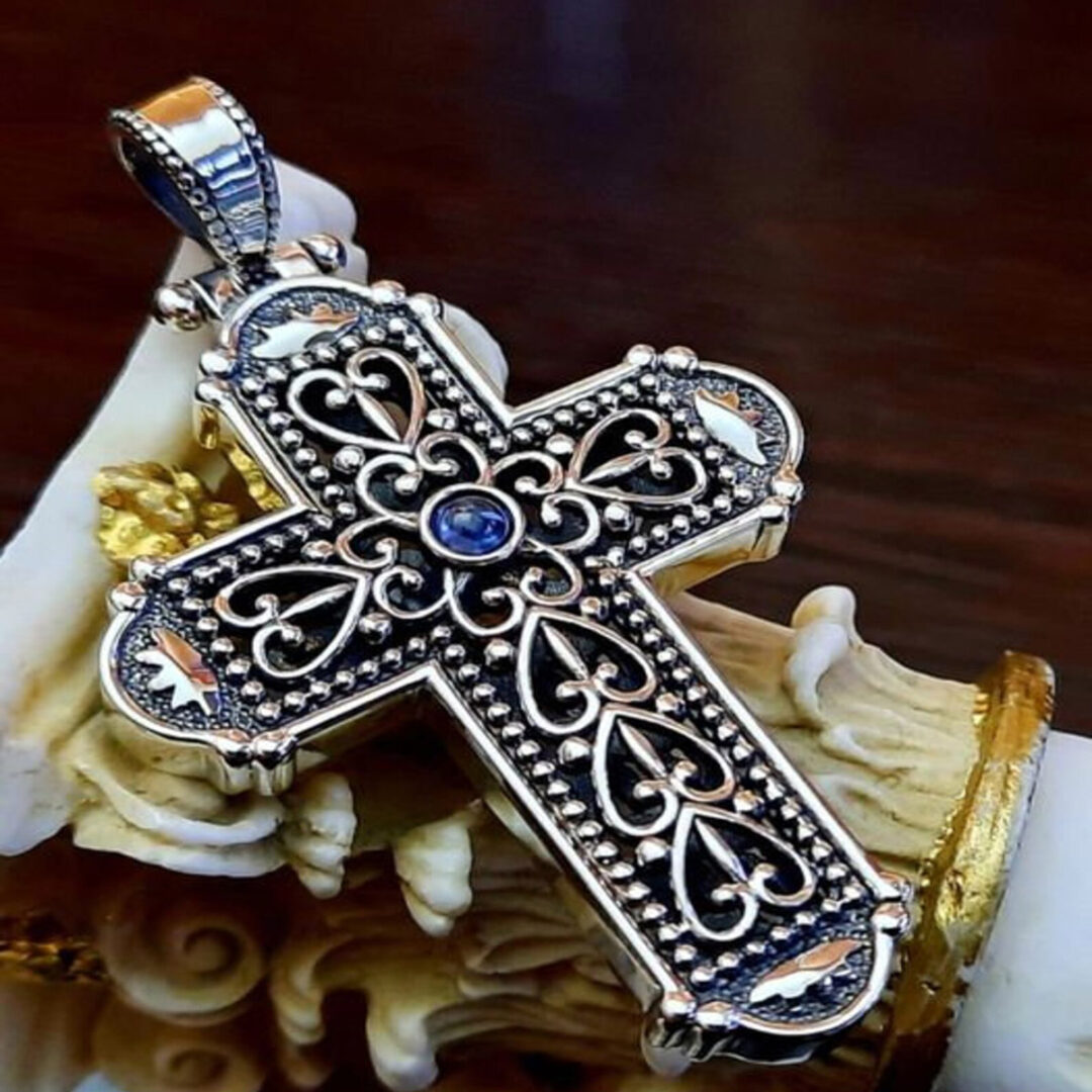 Byzantine Cross Pendant Silver 925 with a Precious Stone