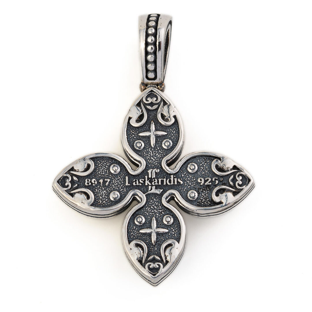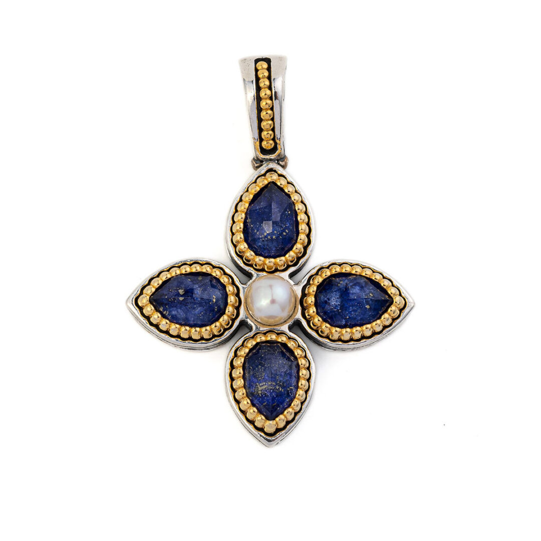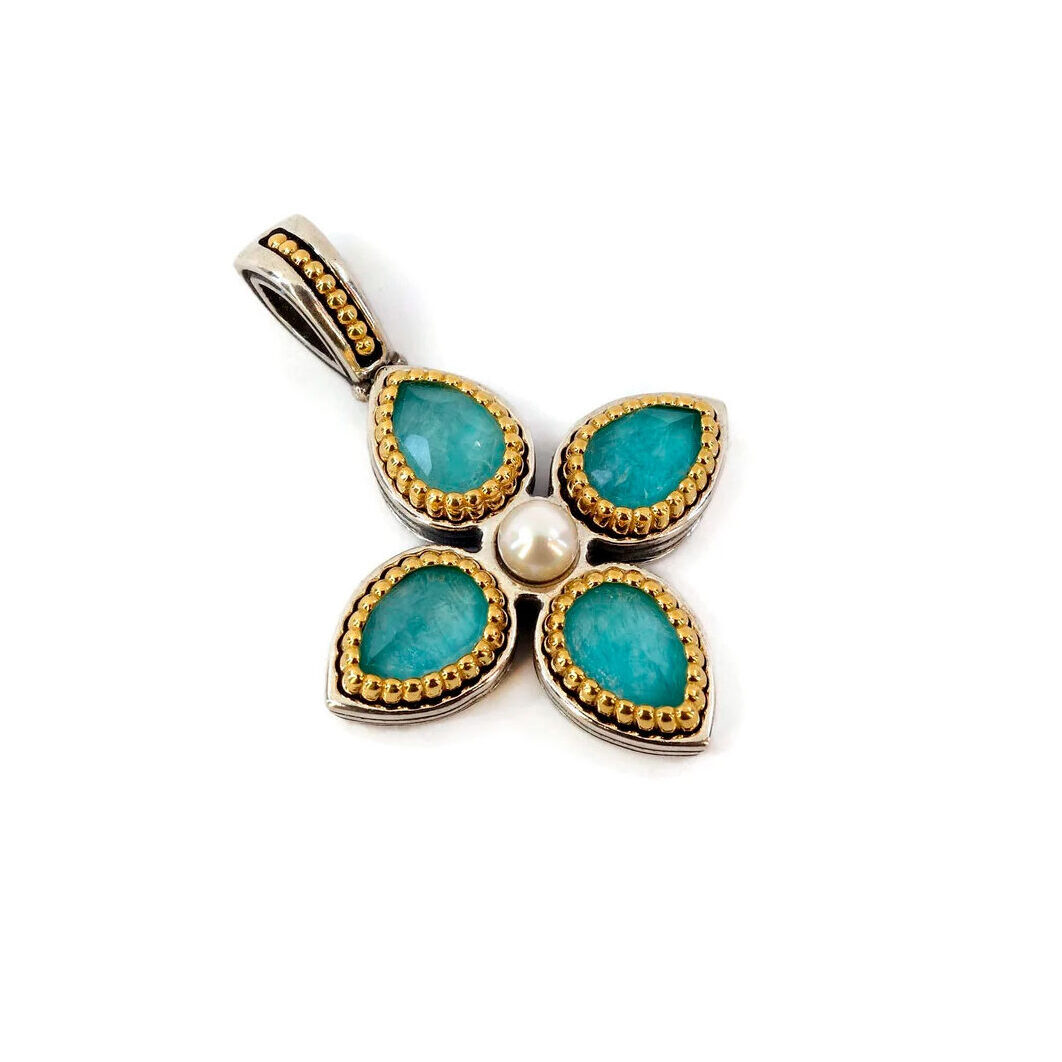 Byzantine Cross Pendant with Doublet Gemstone Turquoise Copper and Pearl