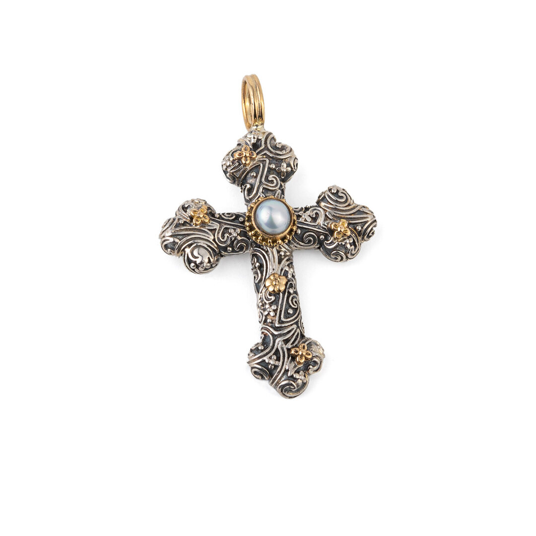 Byzantine Cross with Pearl – Sterling Silver and 18K Gold