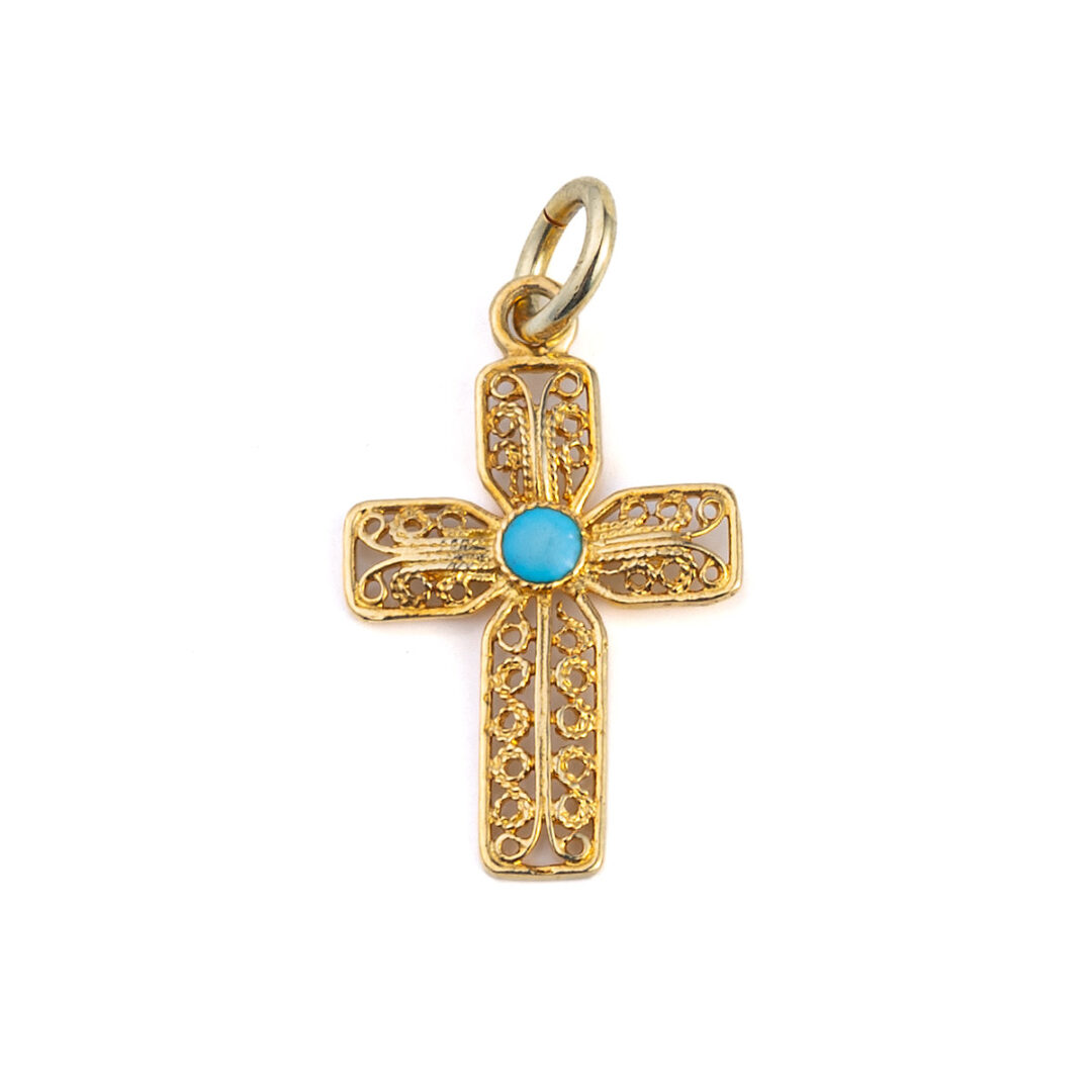 Byzantine Cross with Turquoise Enamel – 18K Gold