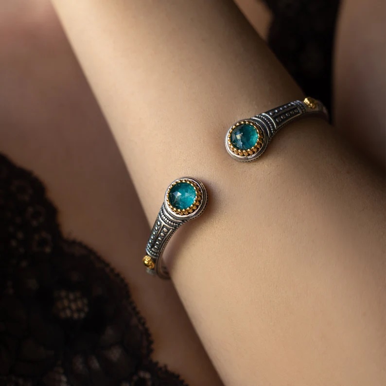 Byzantine Cuff Bracelet with Doublet Apatite Gemstone