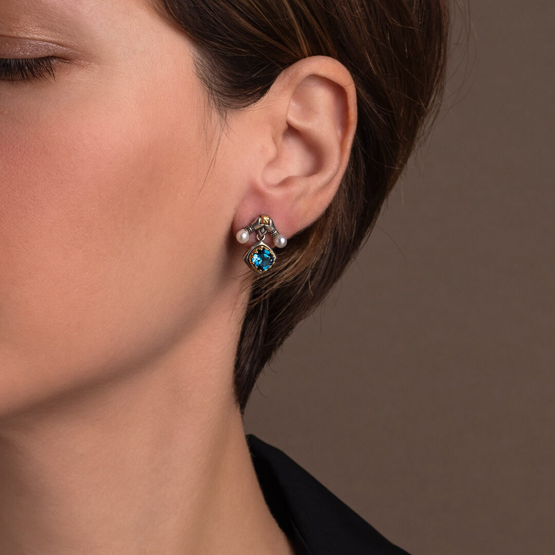 Byzantine Dangle Earrings with Natural London Blue Topaz
