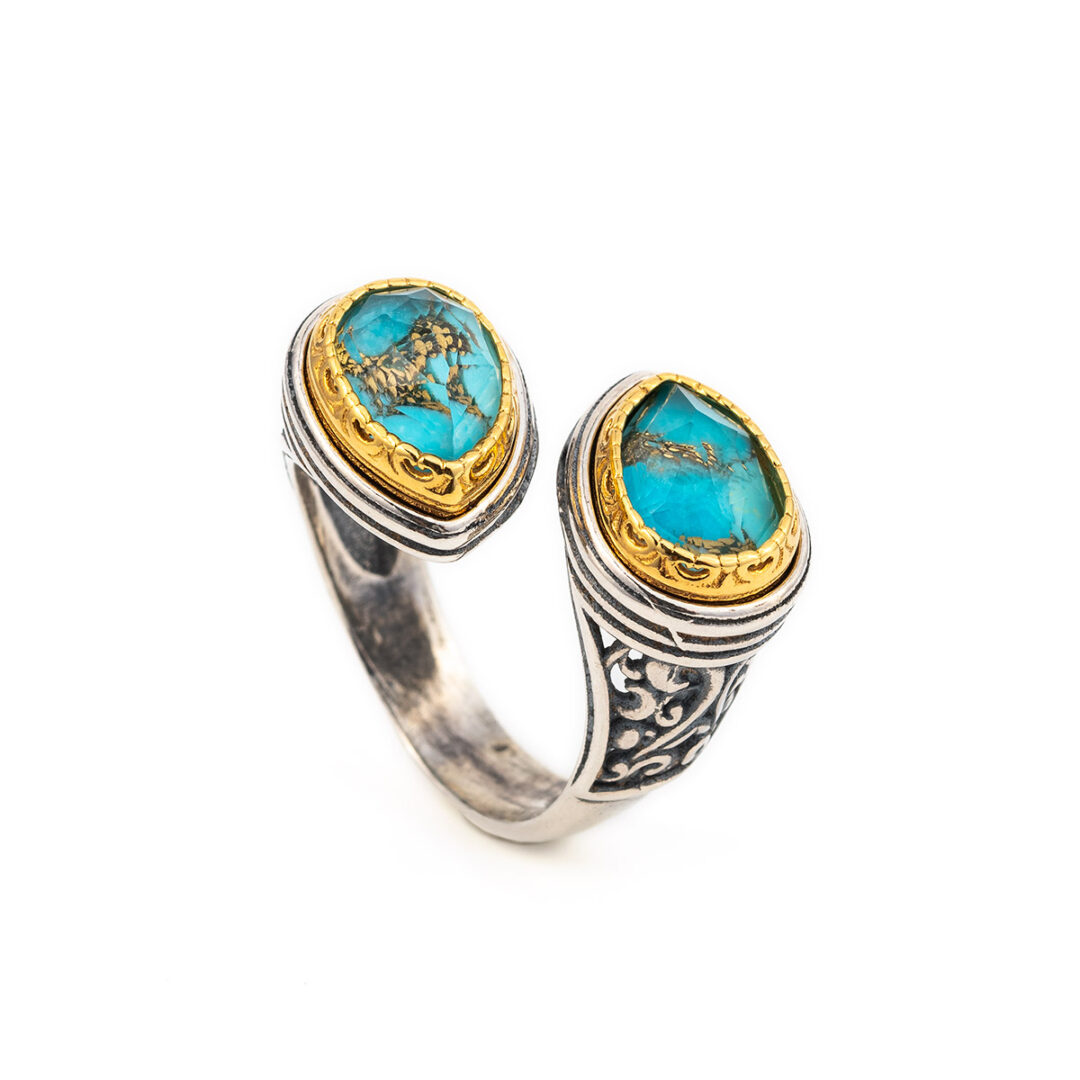 Byzantine Doublet Turquoise Ring – 925 Sterling Silver Gold Plated