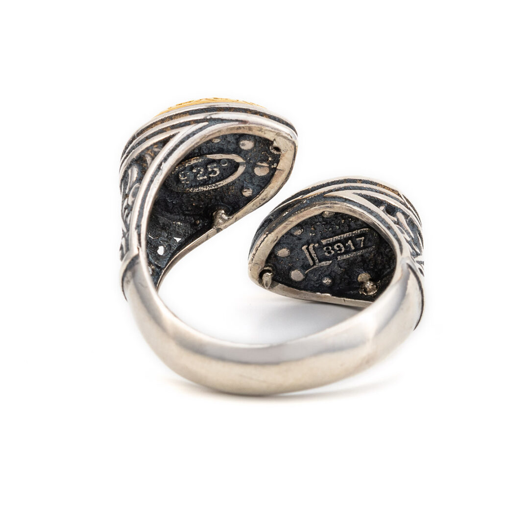 A unique and elegant ring made in 925⁰ sterling silver and gold plated, decorated with doublet crystals.