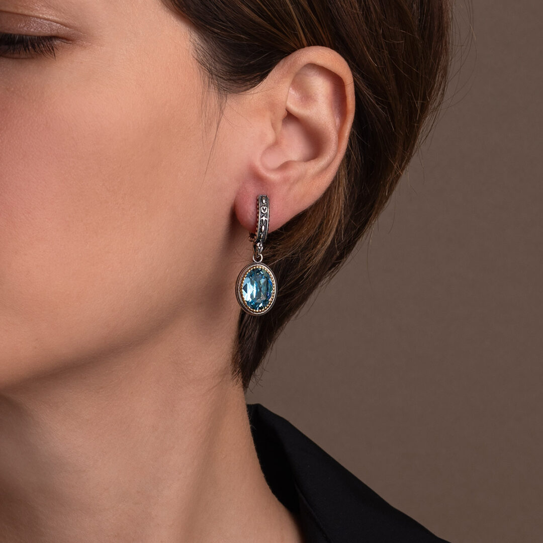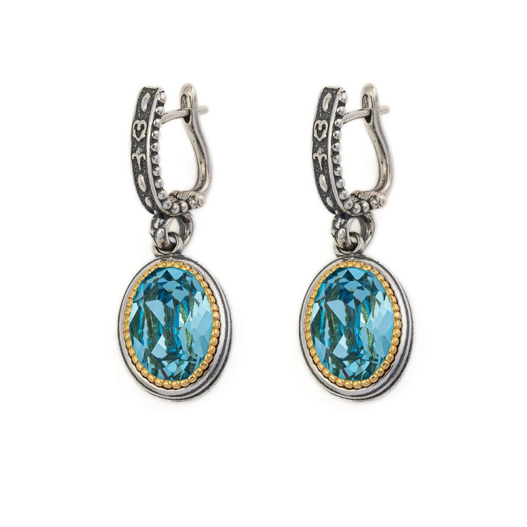 Byzantine earrings with aqua crystal 10mmX14mm oval stone.