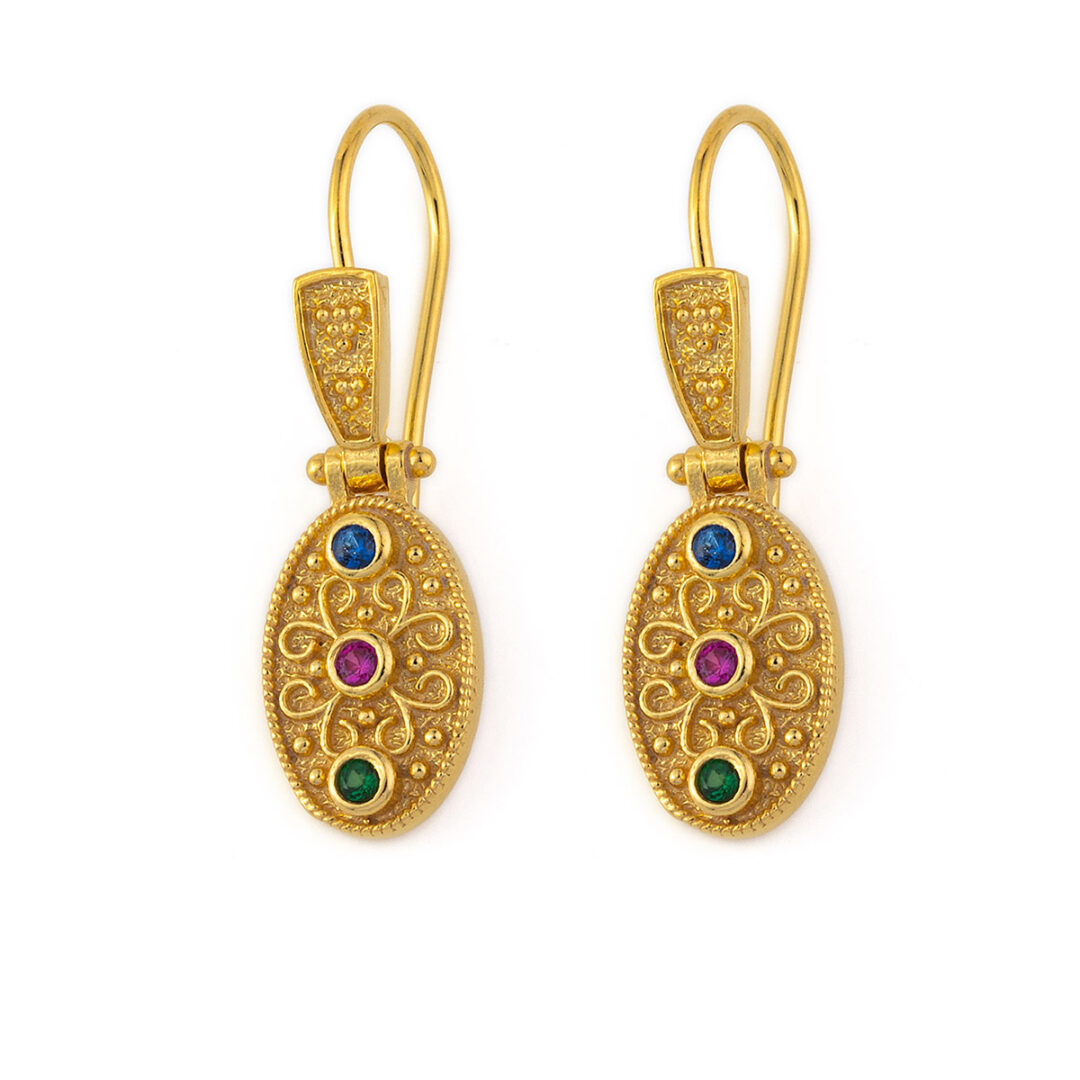 Byzantine Earrings with Zircon – Sterling Silver and Gold Plated