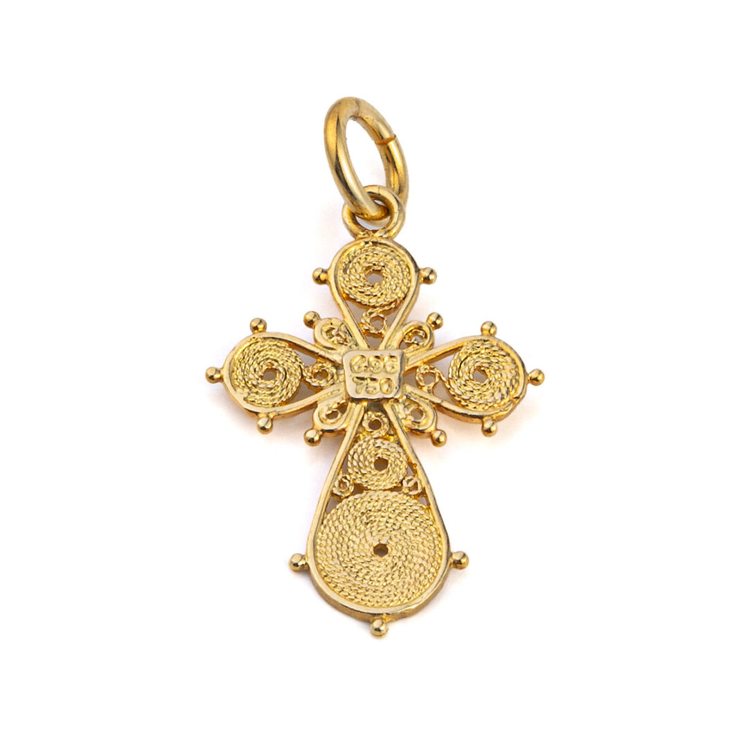 Byzantine Filigree Cross with Enamel – 18K Gold