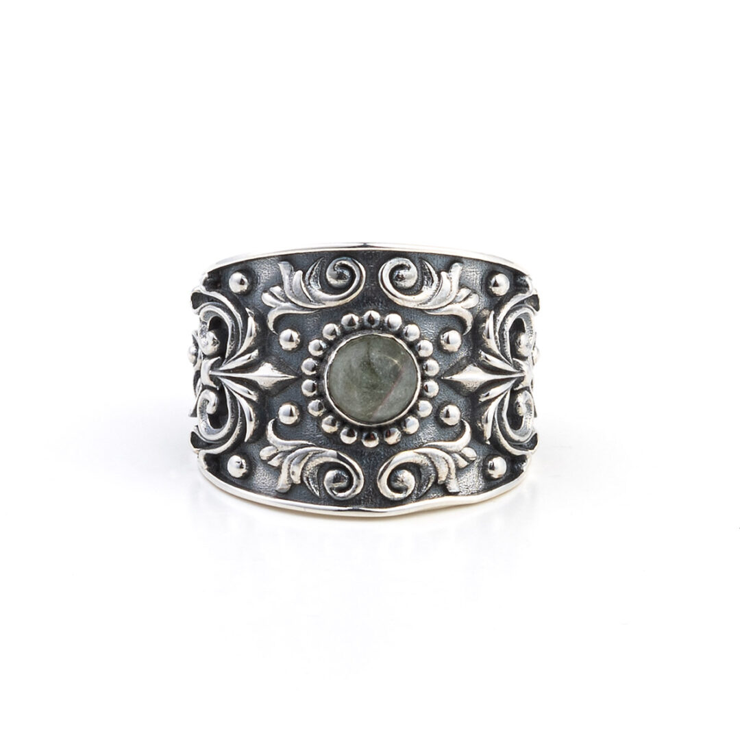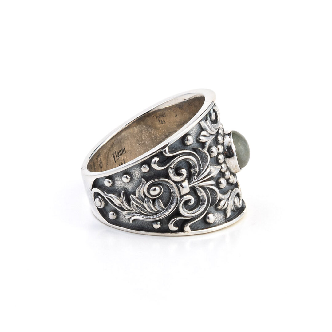 Byzantine Floral Tourmaline Ring – 925 Sterling Silver