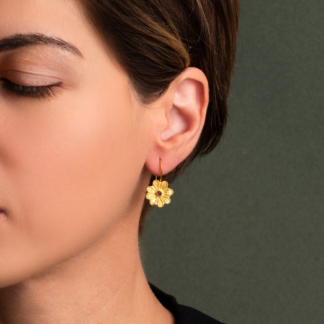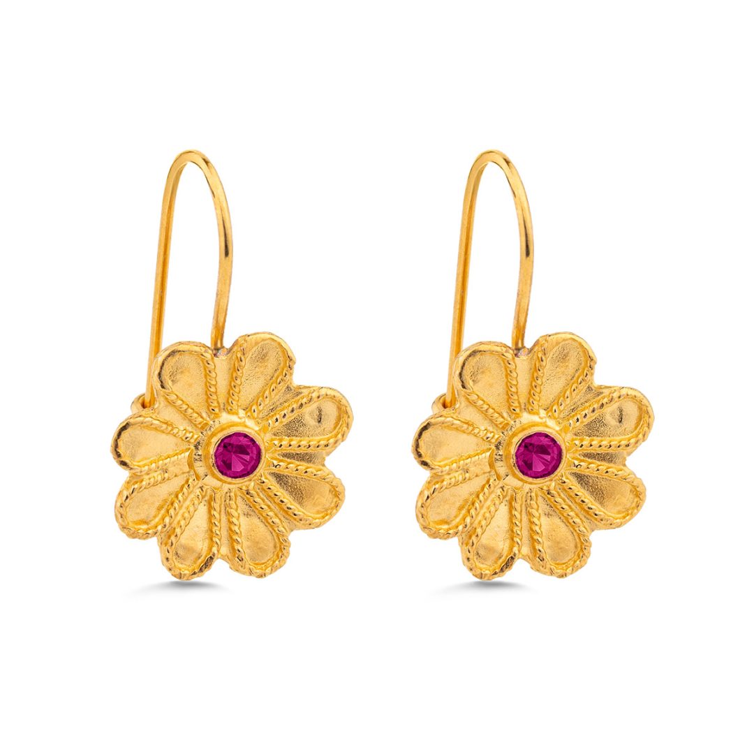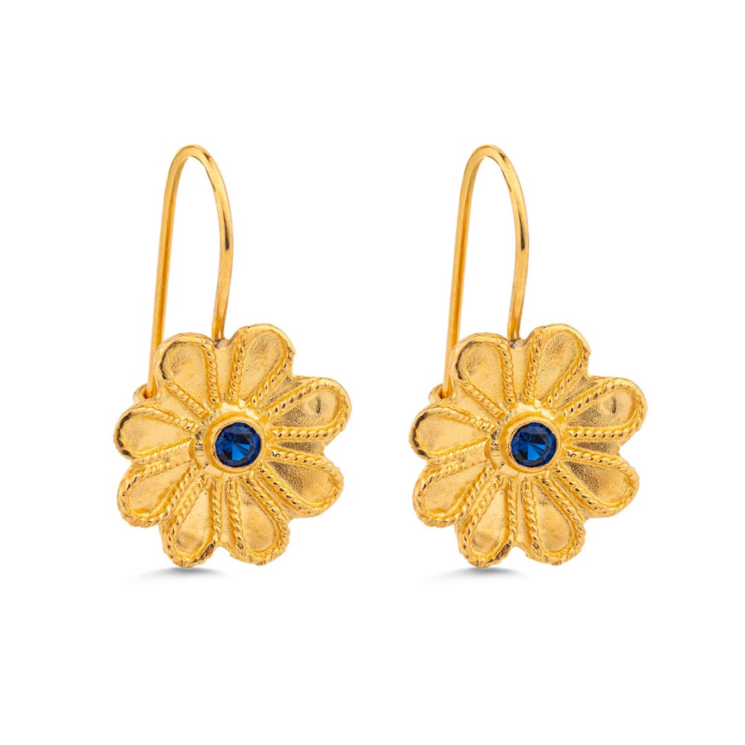 Byzantine Flower Earrings in 925 Sterling Silver Gold-Plated with Zircon