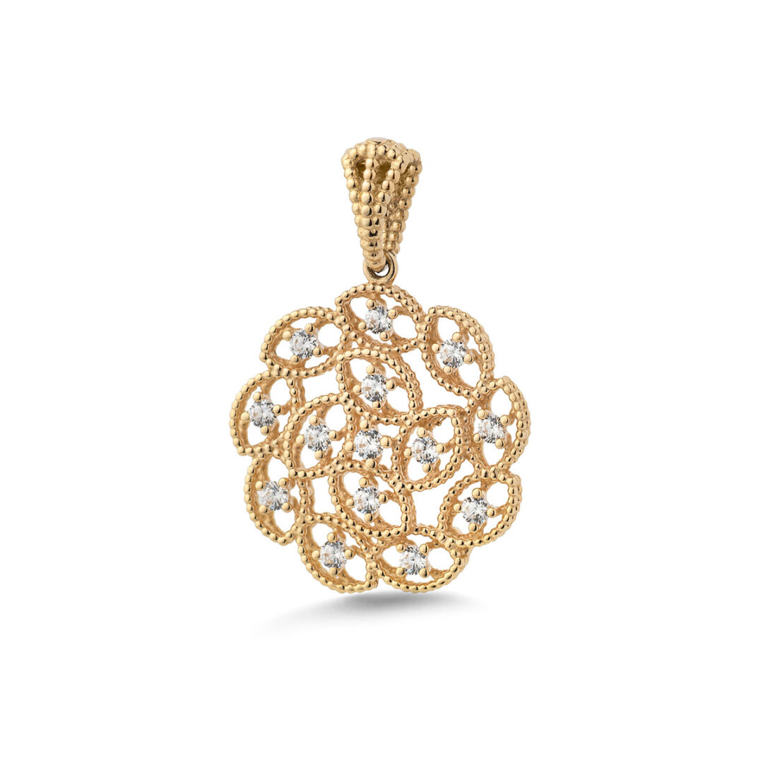 Byzantine Flower Pendant with Zircons – 14K Gold