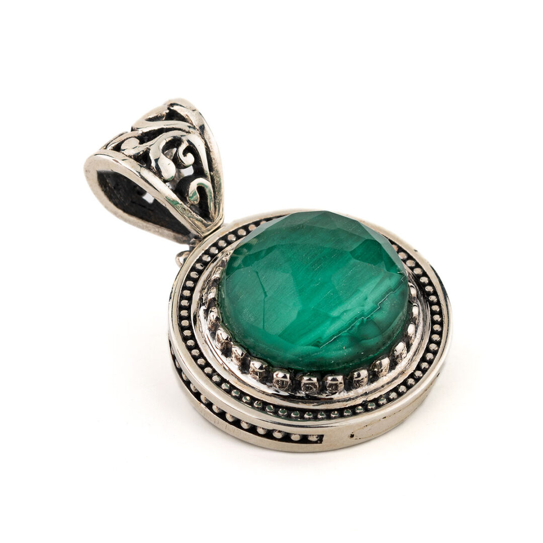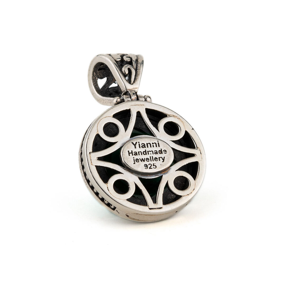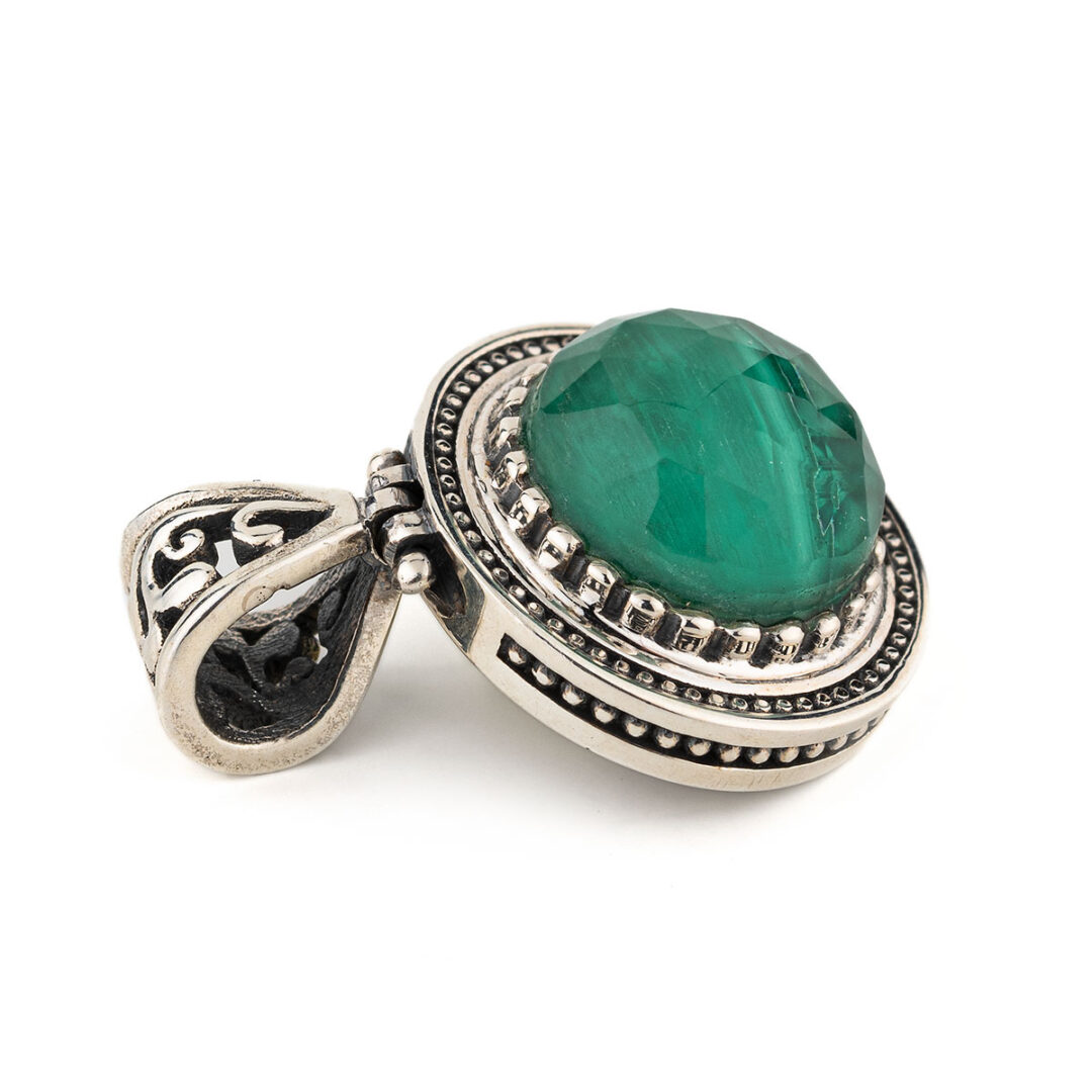 Byzantine Malachite Pendant – 925 Sterling Silver Gold Plated