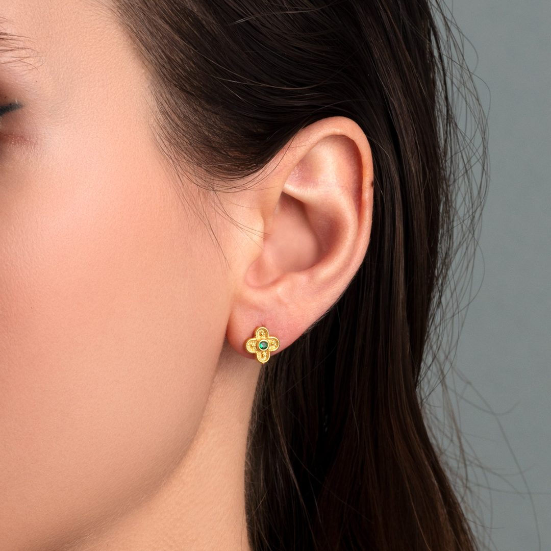 Earrings inspired by Byzantine art, decorated with Cubic Zirconia (CZ).