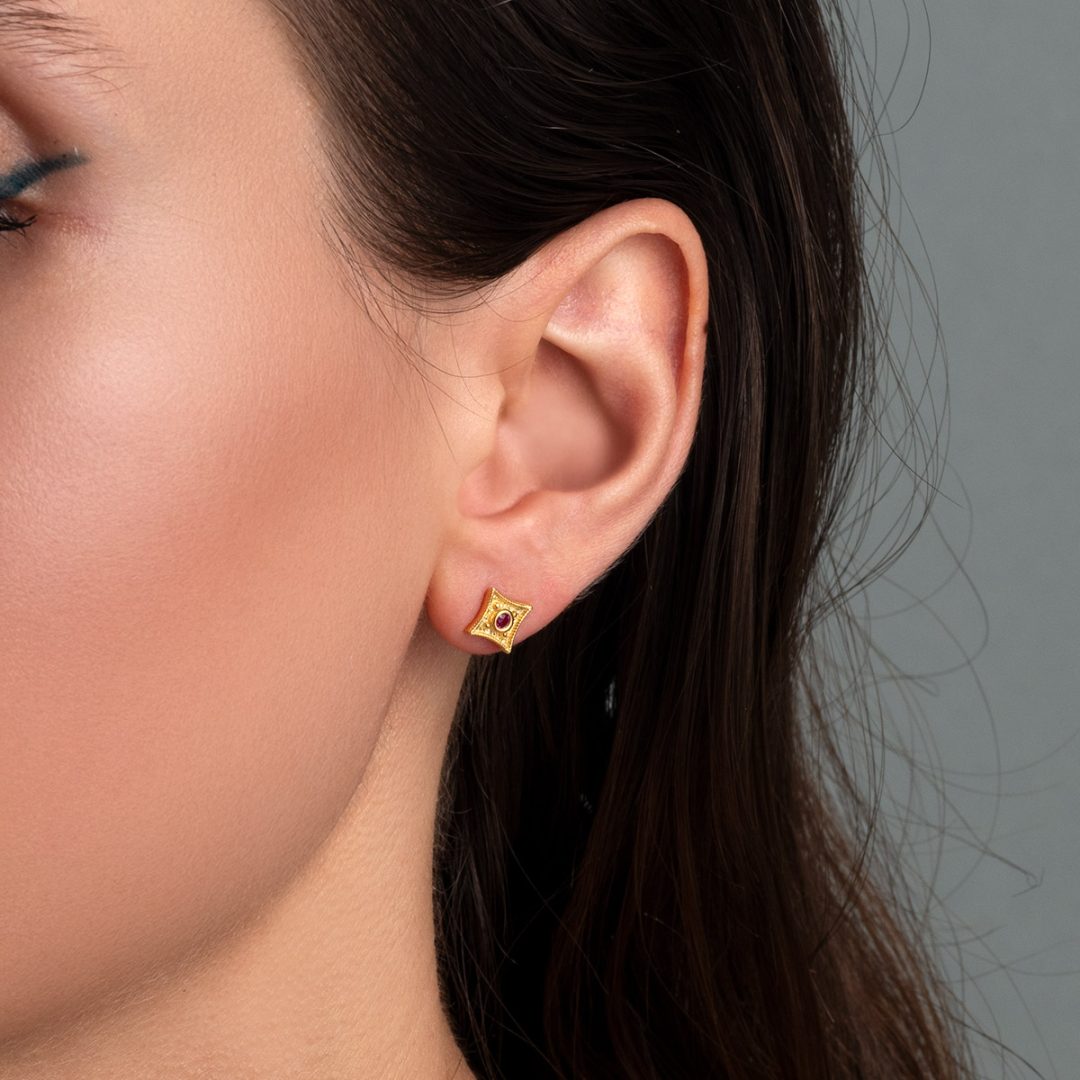 Byzantine Mini Star Stud Earrings with Zircon