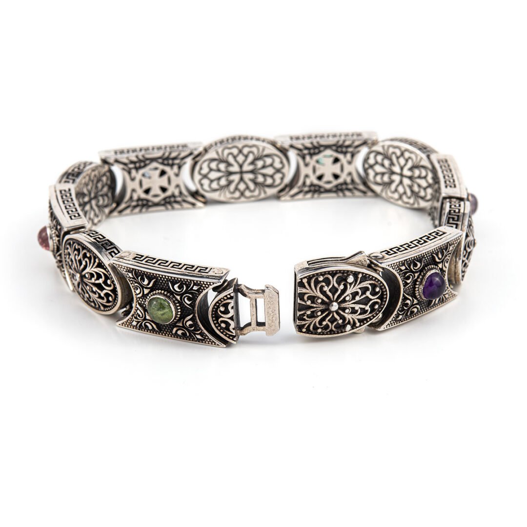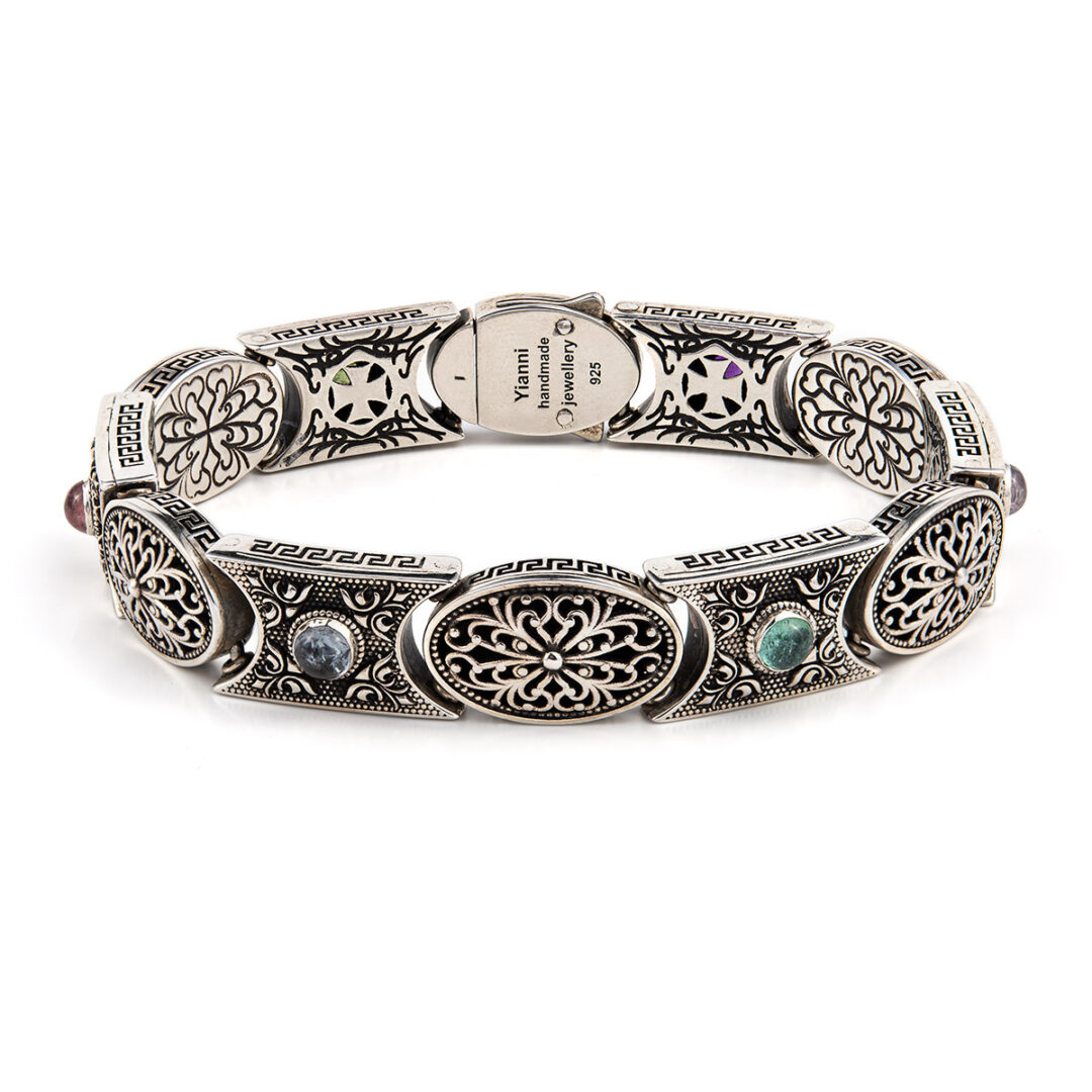 Byzantine Multi Stone Link Bracelet – Sterling Silver Yianni Jewelry