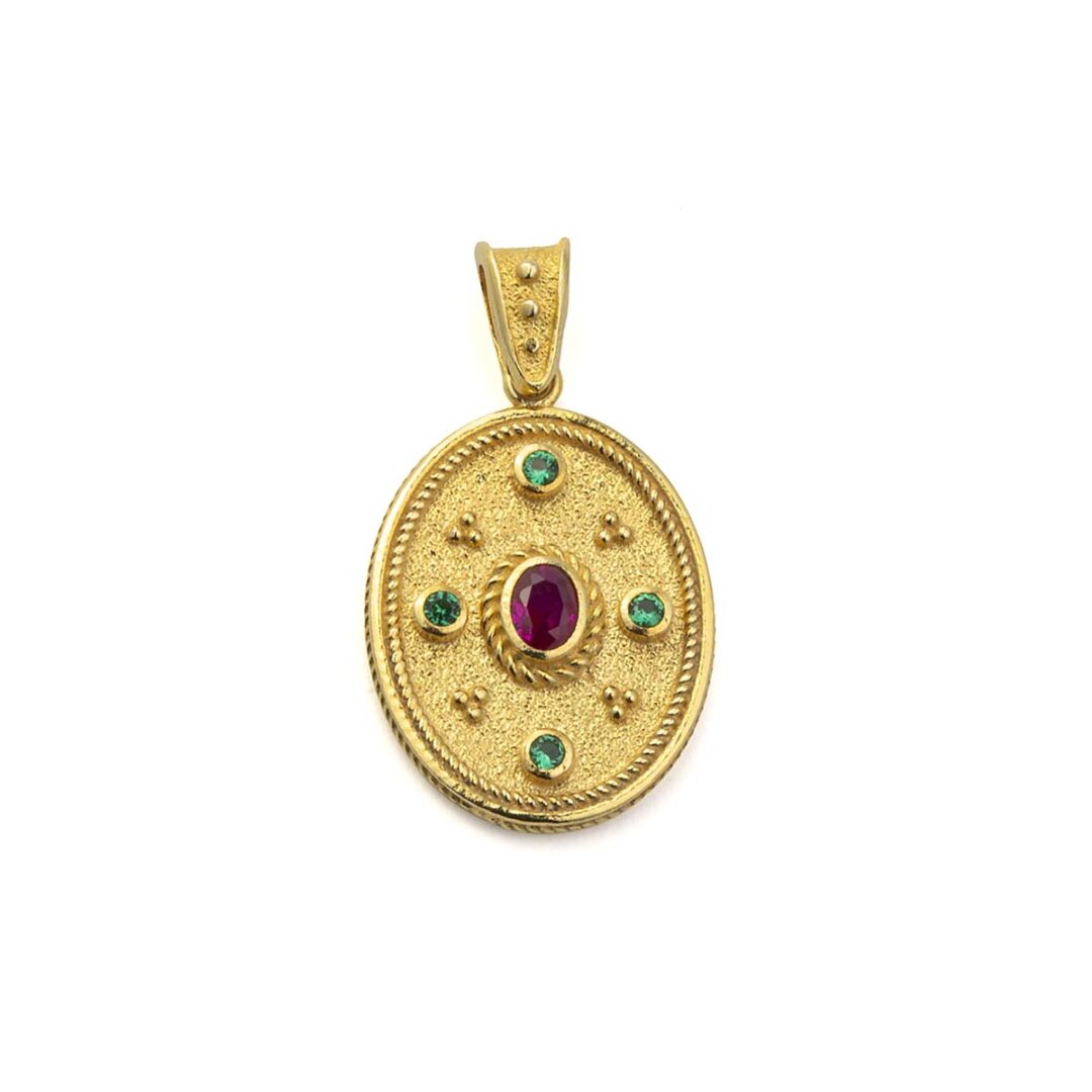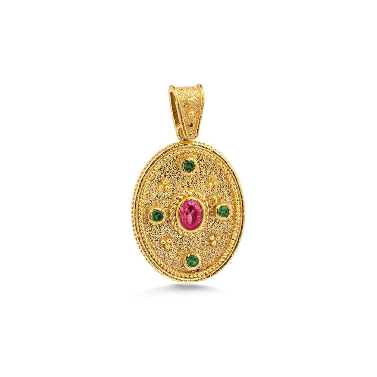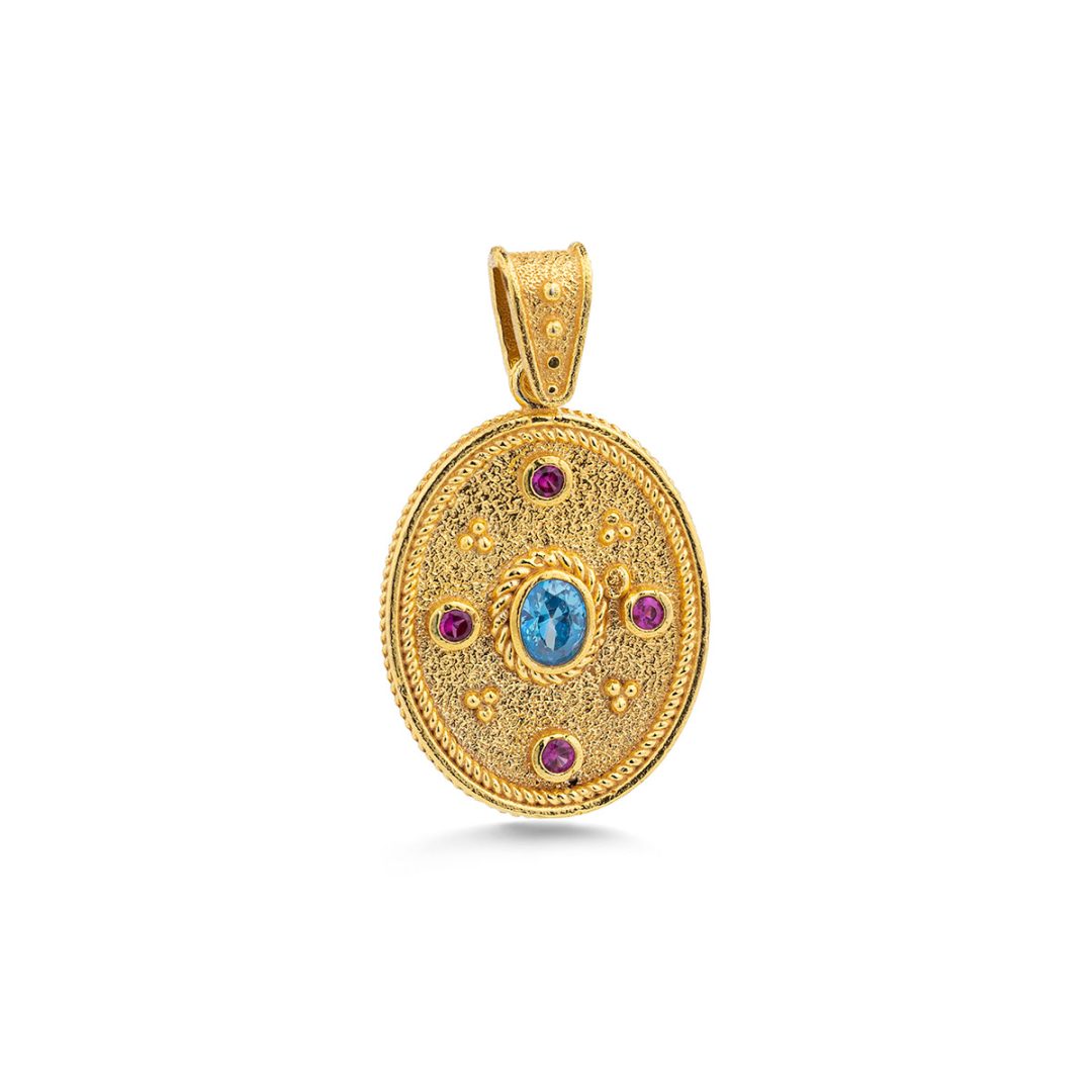 Byzantine Oval Pendant with Multicolor Zircon Stone