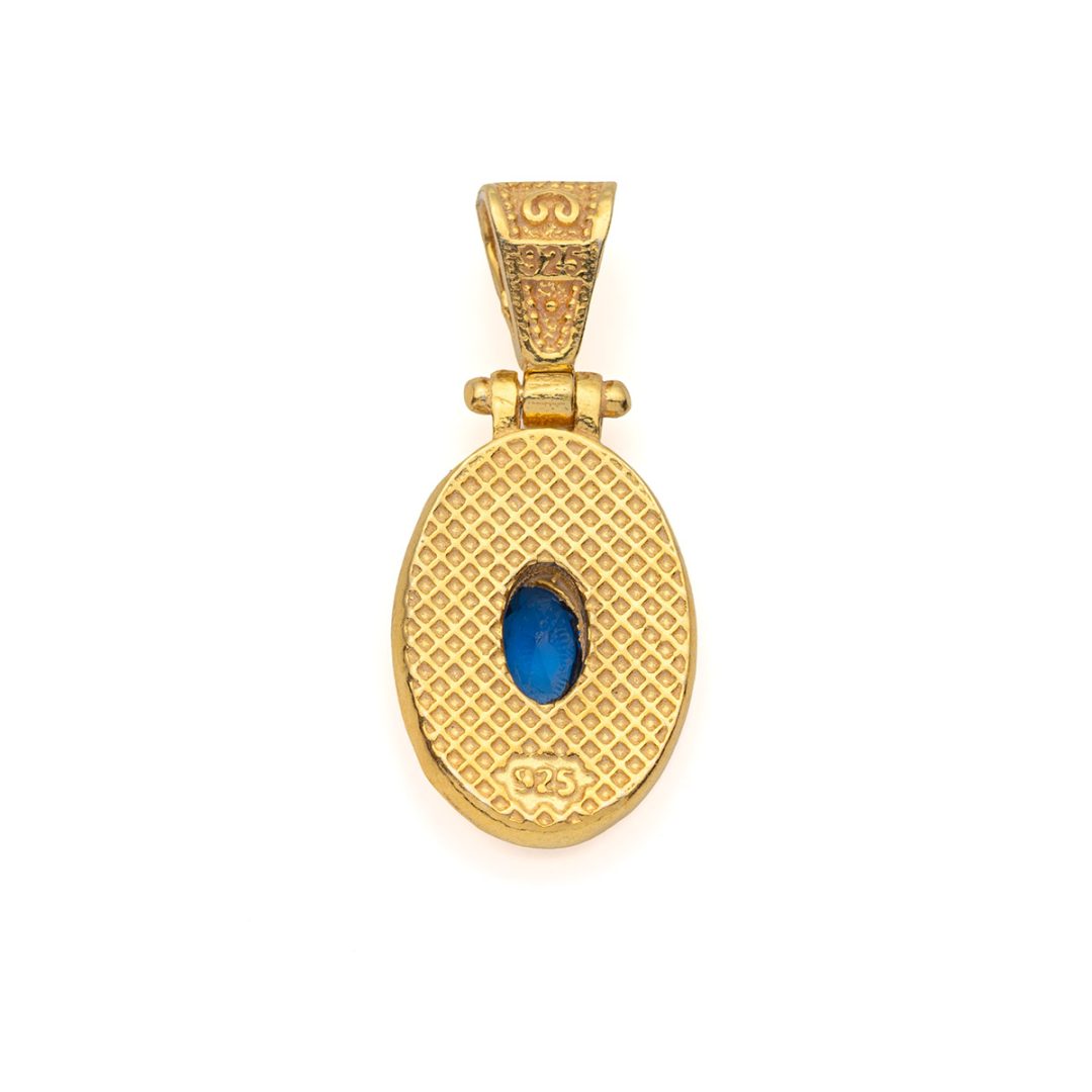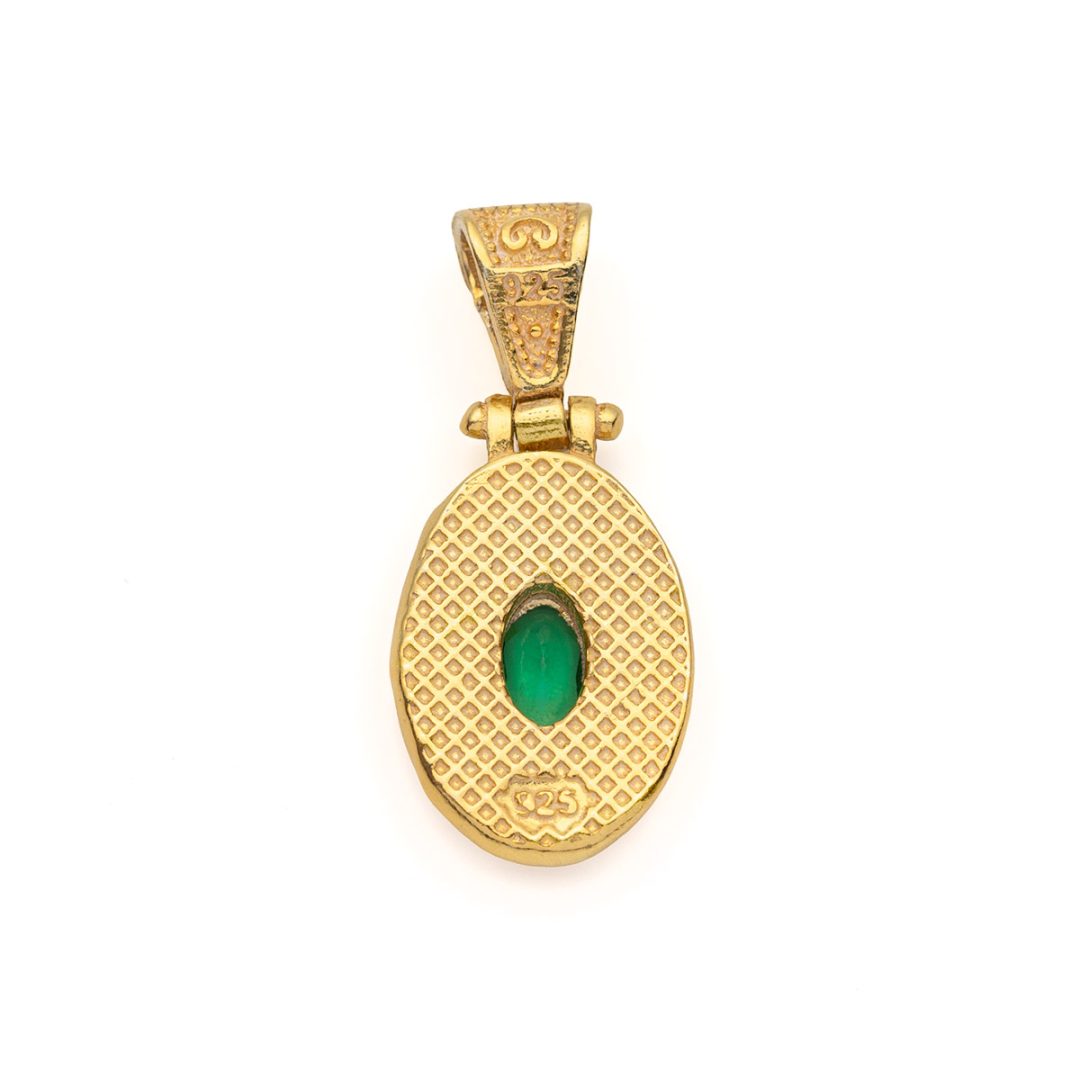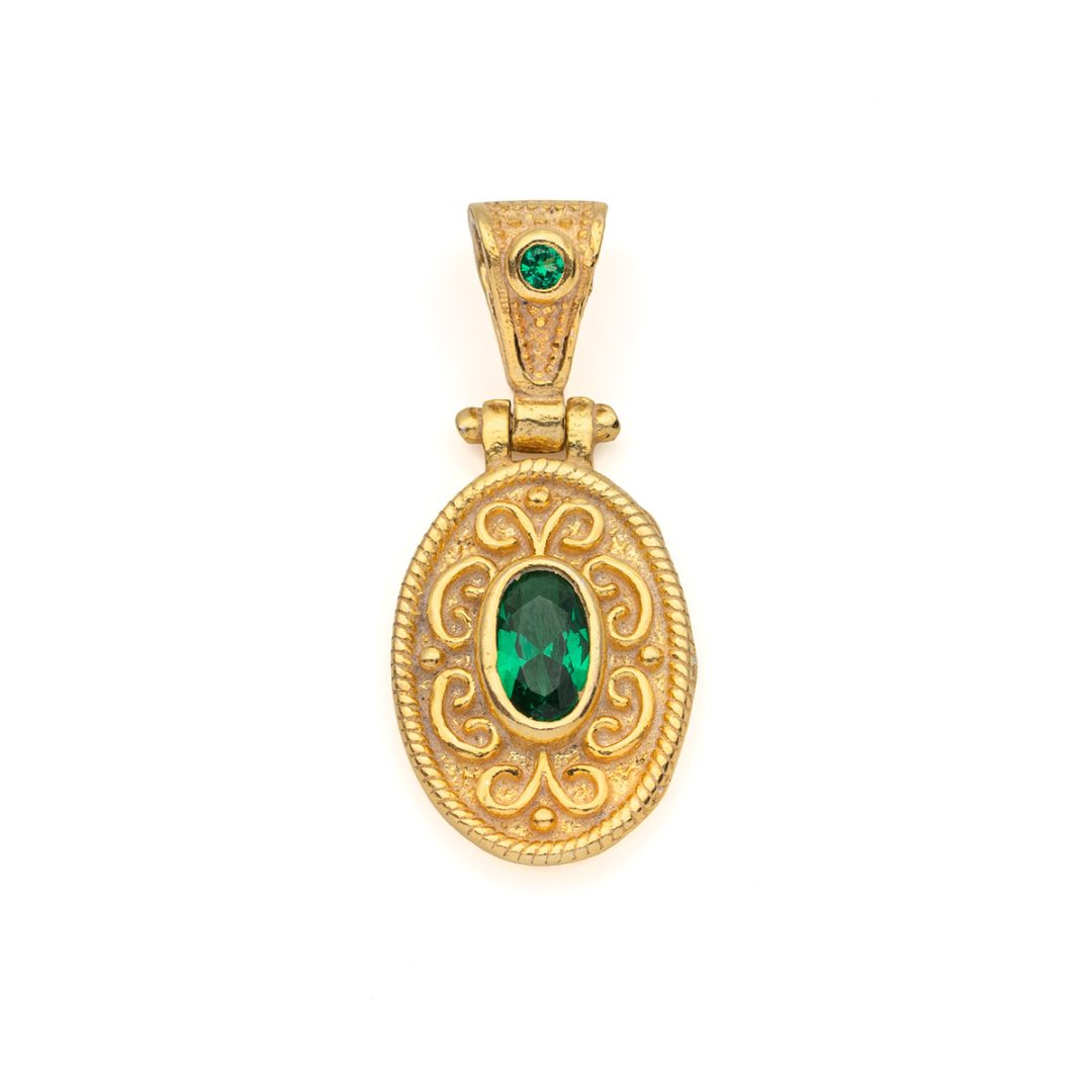 Byzantine Oval Pendant with Zircon 925 Sterling Silver Gold Plated