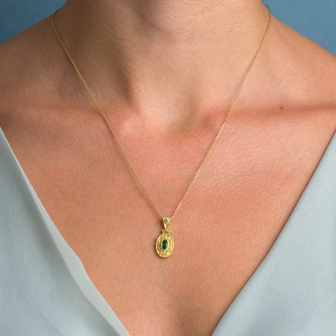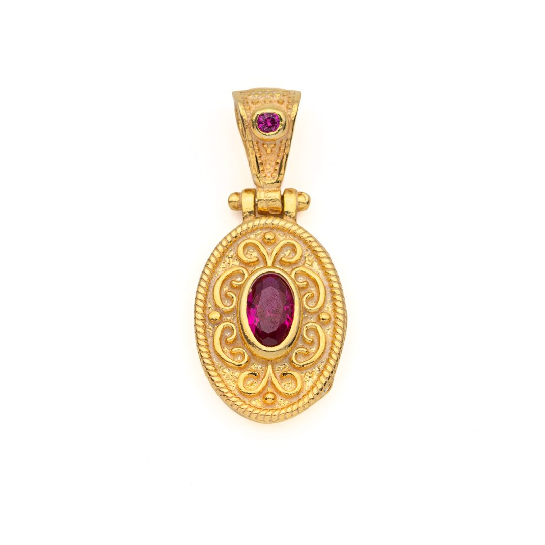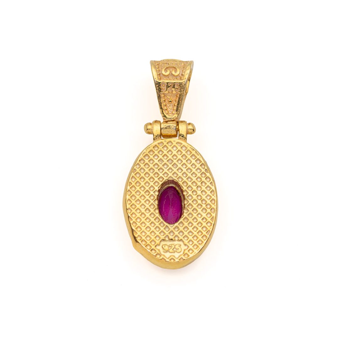 Byzantine Oval Pendant with Zircon 925 Sterling Silver Gold Plated