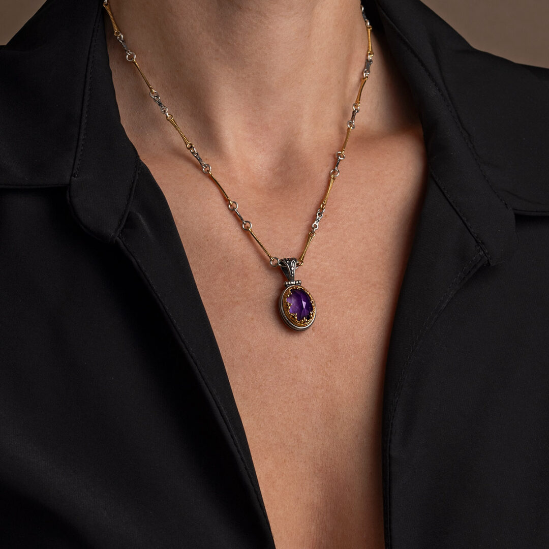 Byzantine pendant with doublet amethyst 10mmX14mm oval gemstone.
