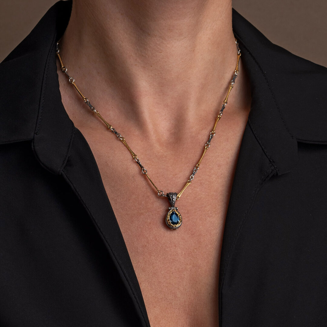 Byzantine Pendant with London Blue Topaz Crystal Stone