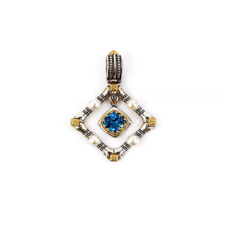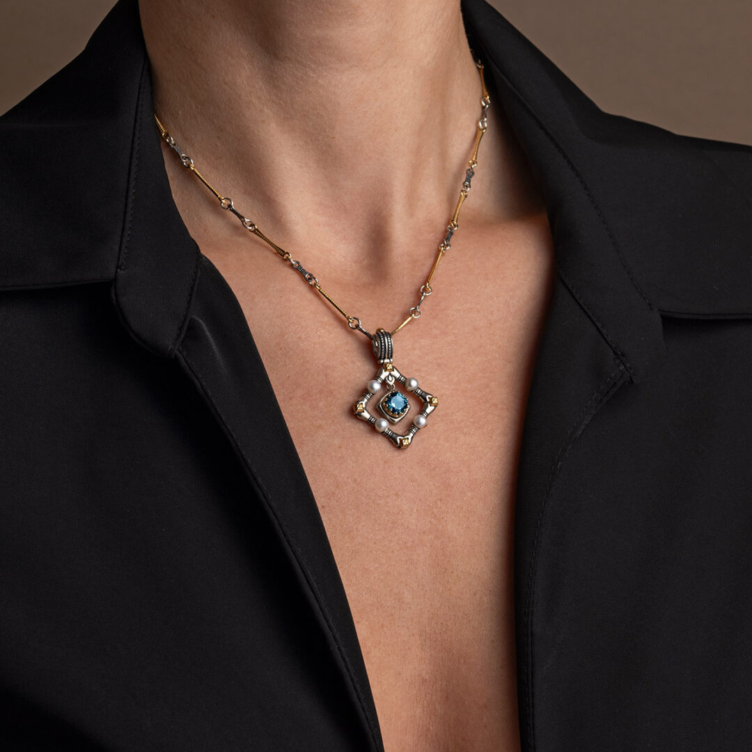 Byzantine Pendant with Natural London Blue topaz Gemstone and Pearl