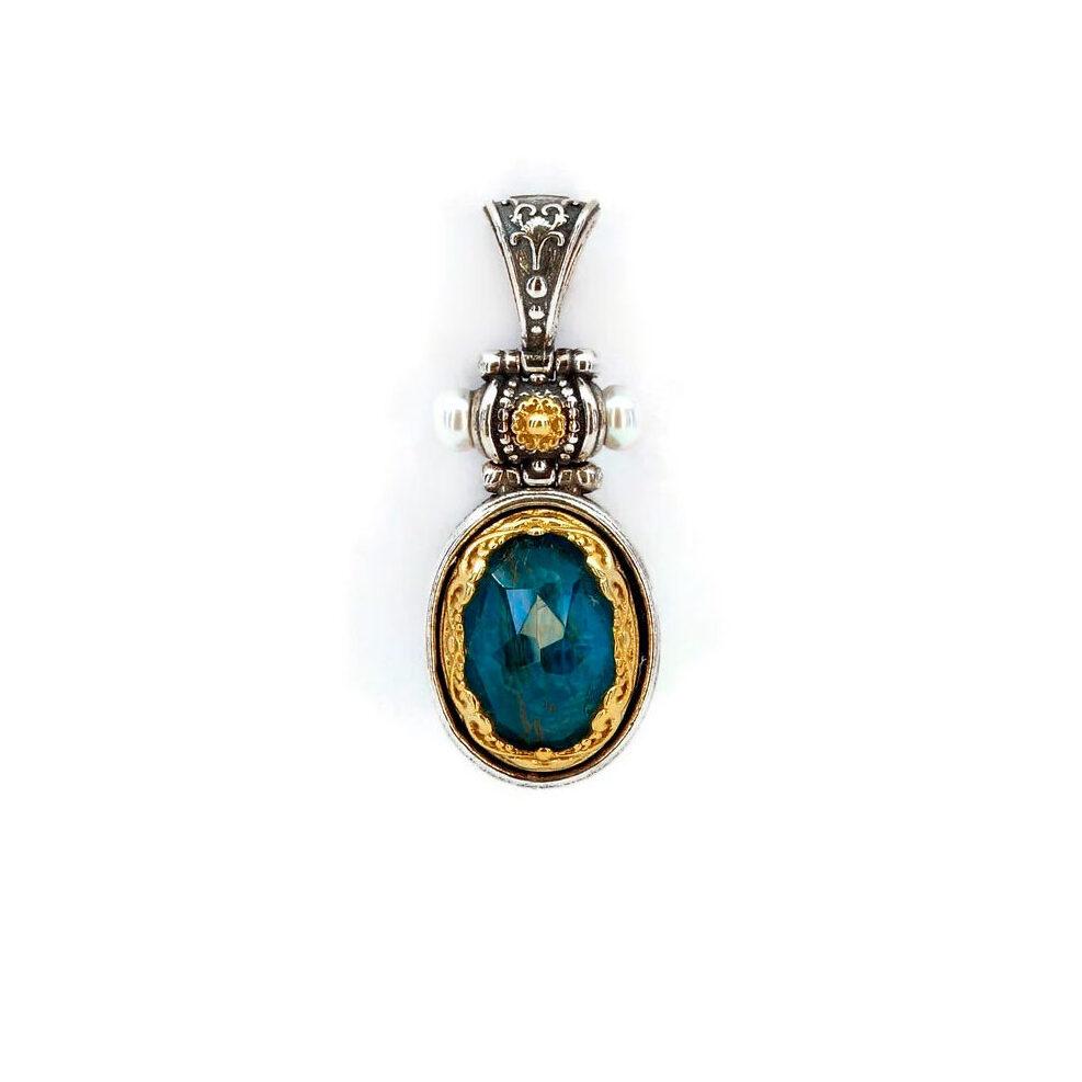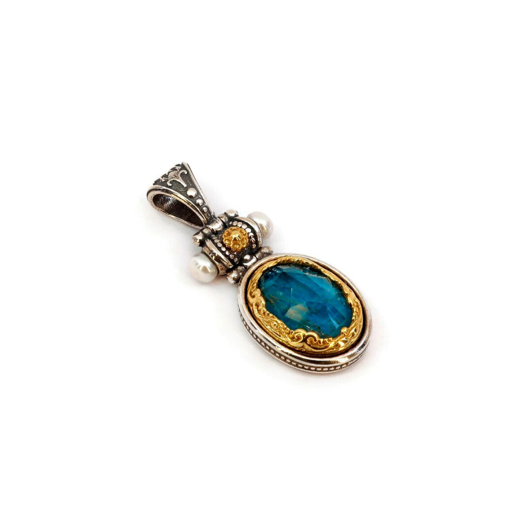Byzantine Pendant with Natural Pearl and Apatite Doublet Stone