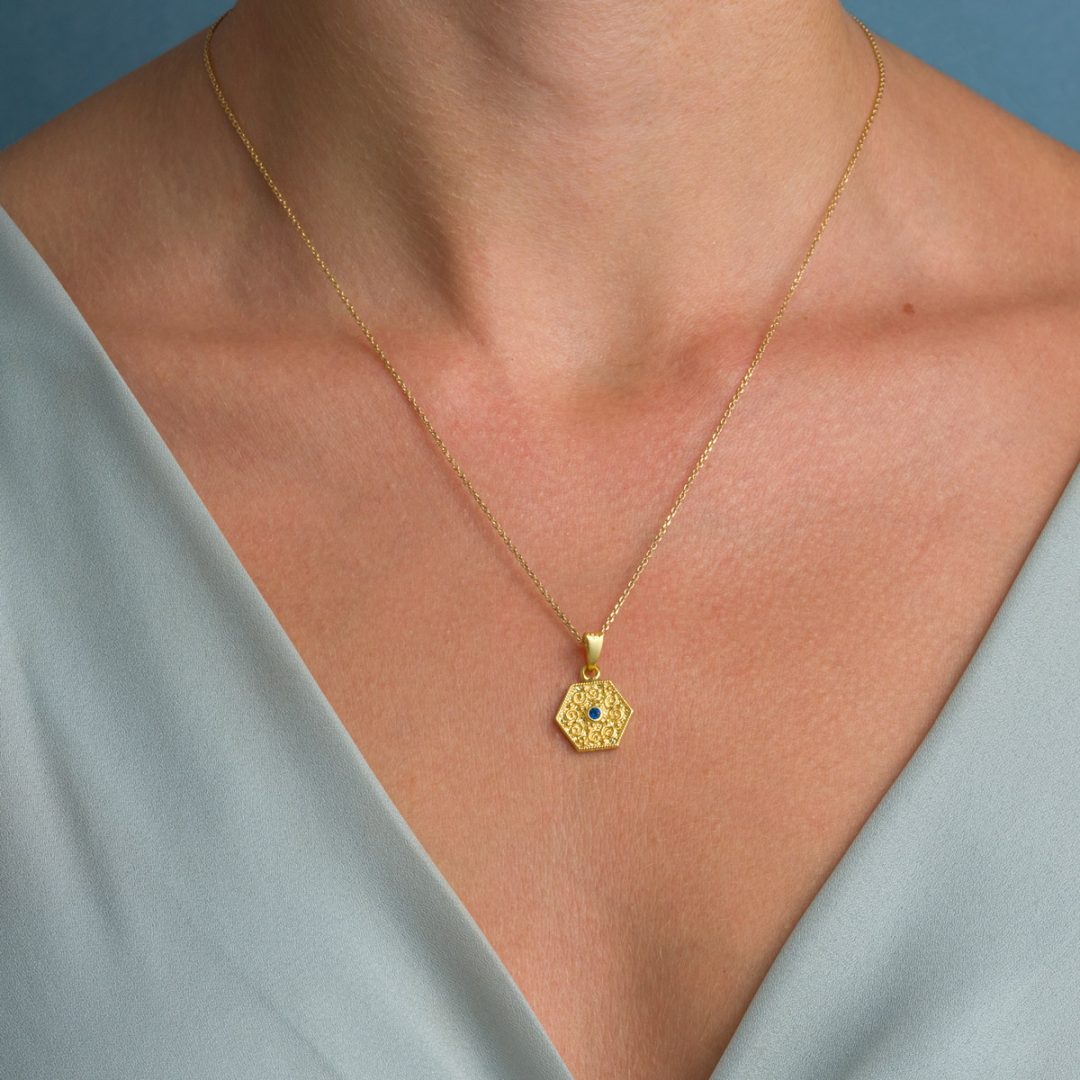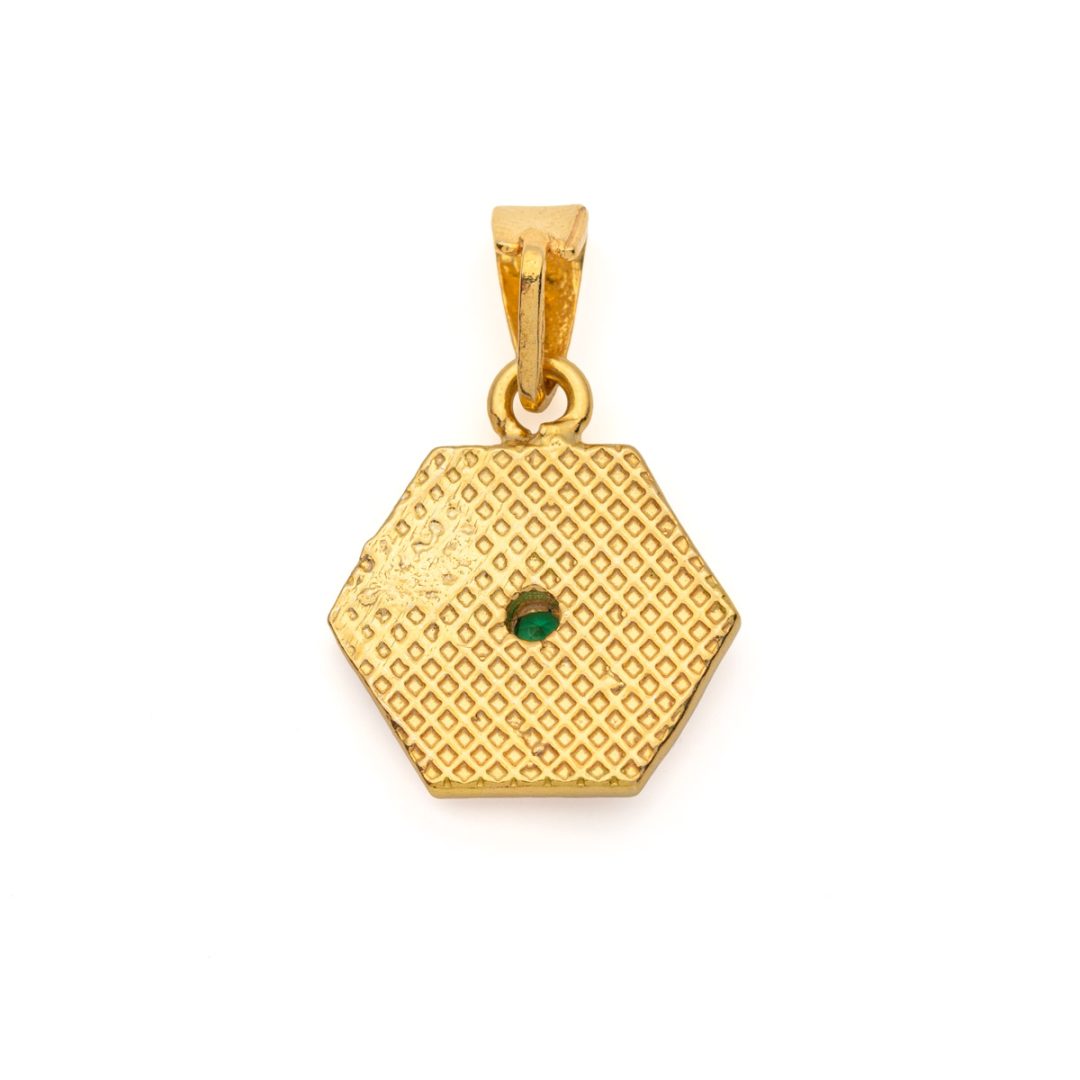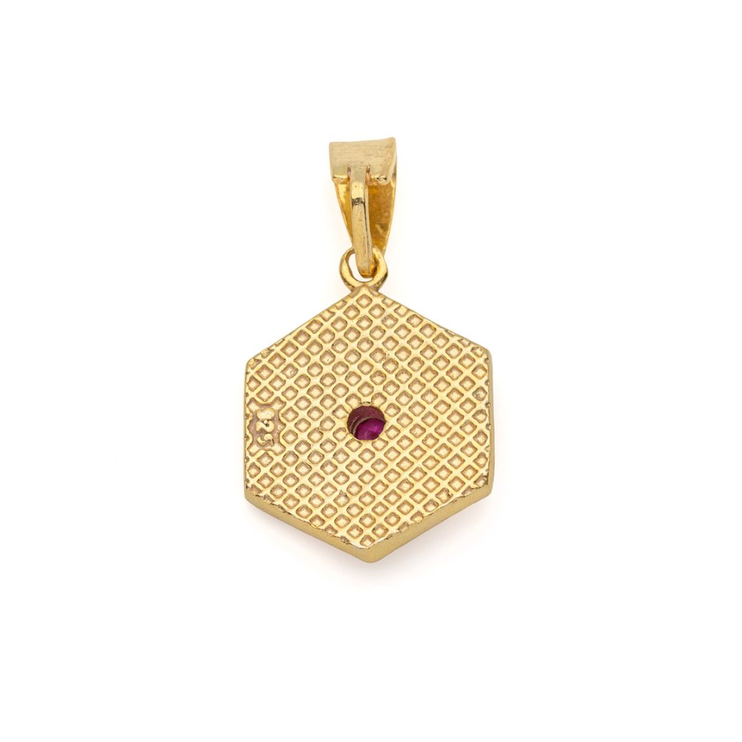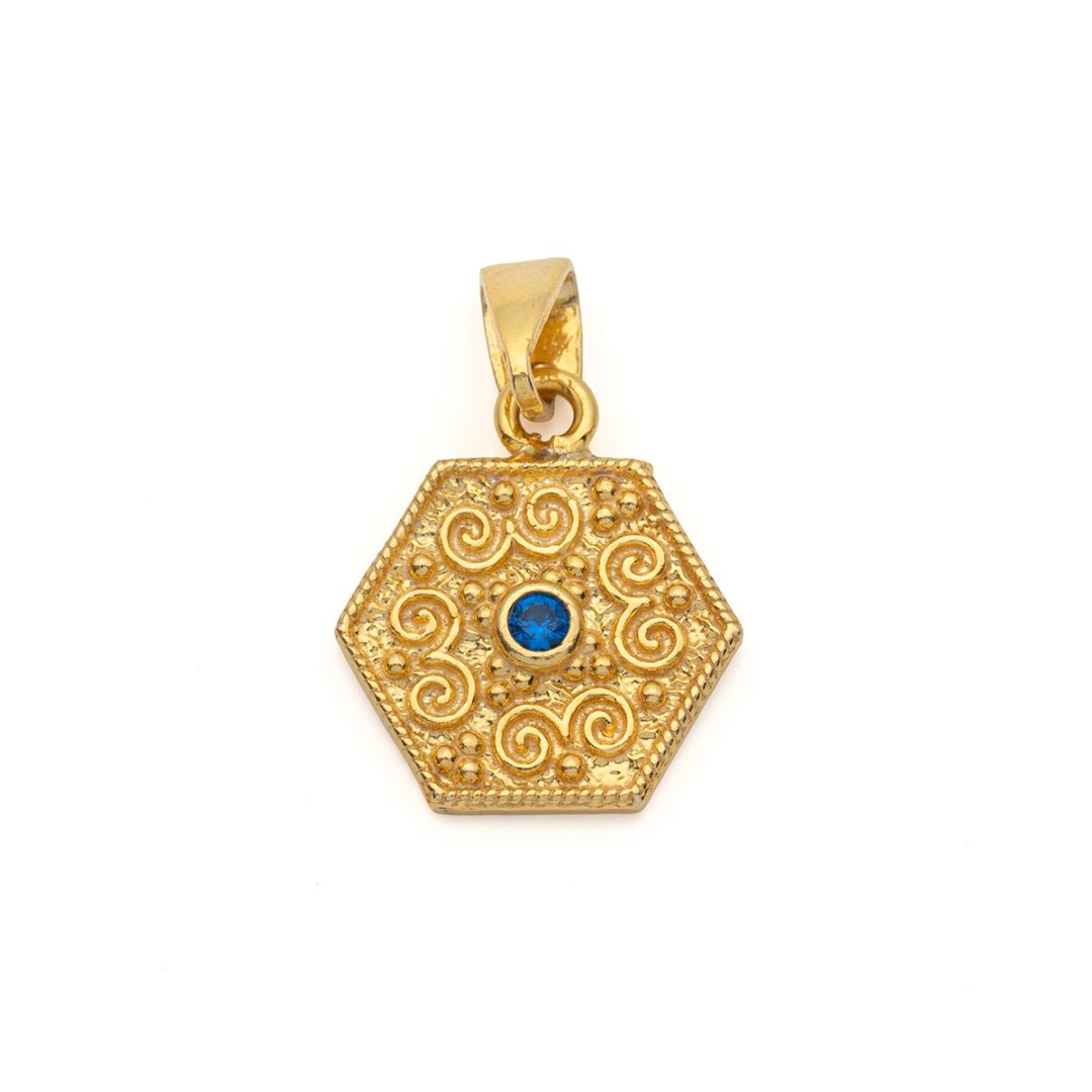 Byzantine Polygon Pendant with Zircon Stone in Gold Plated 925 Sterling Silver
