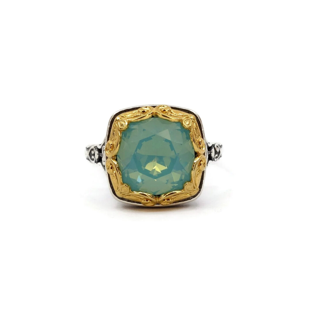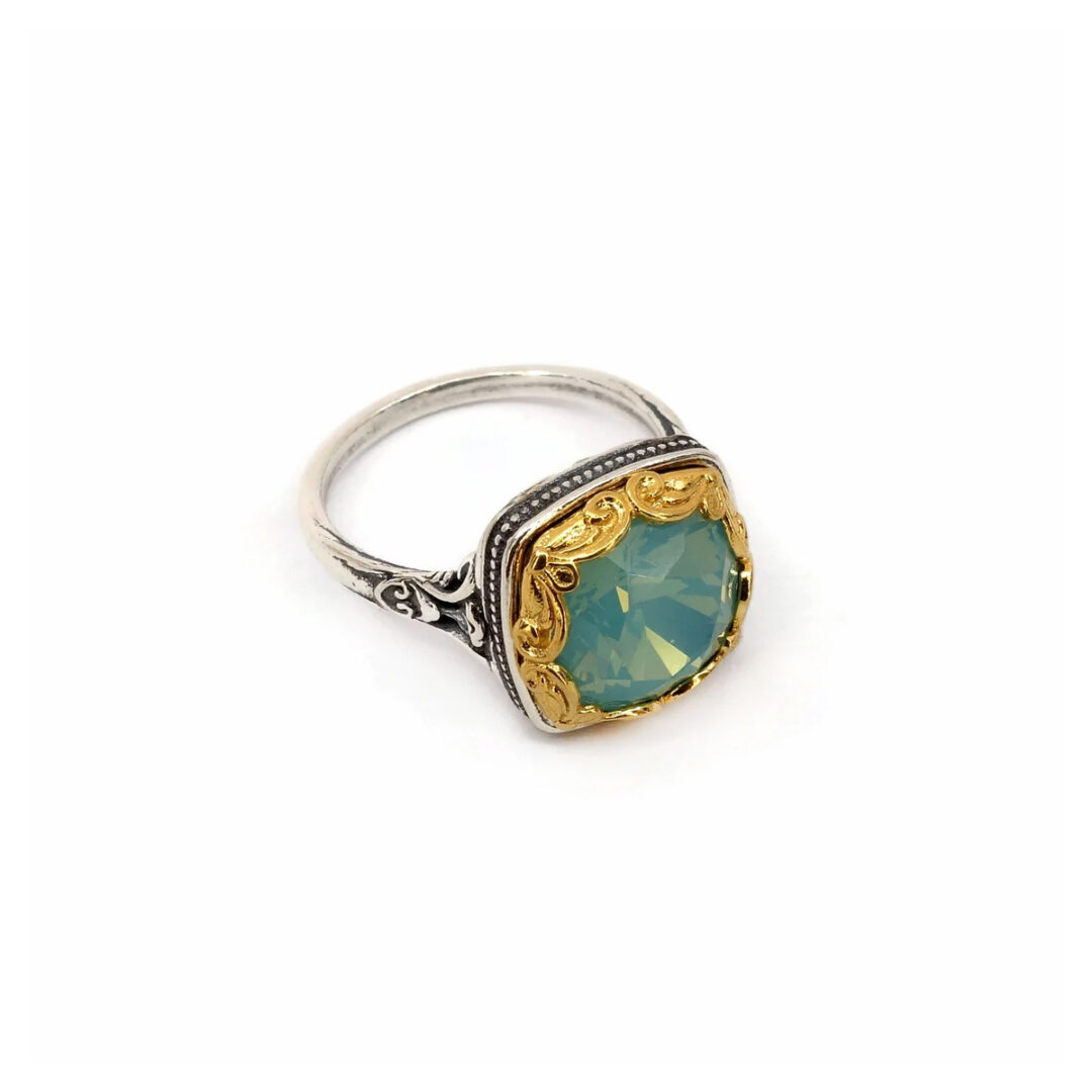 Byzantine Ring Green Opal Crystal Stone – 925 Sterling Silver