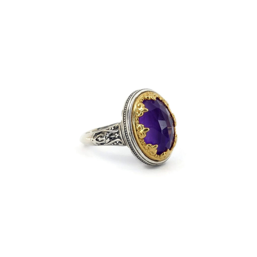 Byzantine ring with doublet amethyst 1cmX1.4cm oval gemstone. Made of 925⁰ sterling silver with gold plated part.