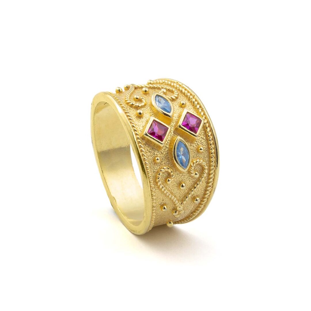 Byzantine Ring with Multicolor Zircon Stone – Sterling Silver and 18K Gold Plating