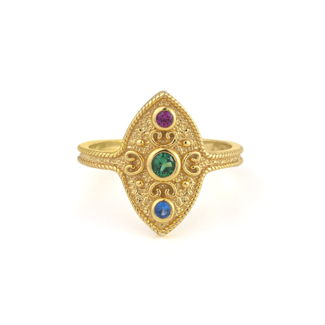 [vc_row][vc_column][vc_column_text css=”” woodmart_inline=”no” text_larger=”no”]Byzantine Ring with Stones – Gold Plated 925 Sterling Silver