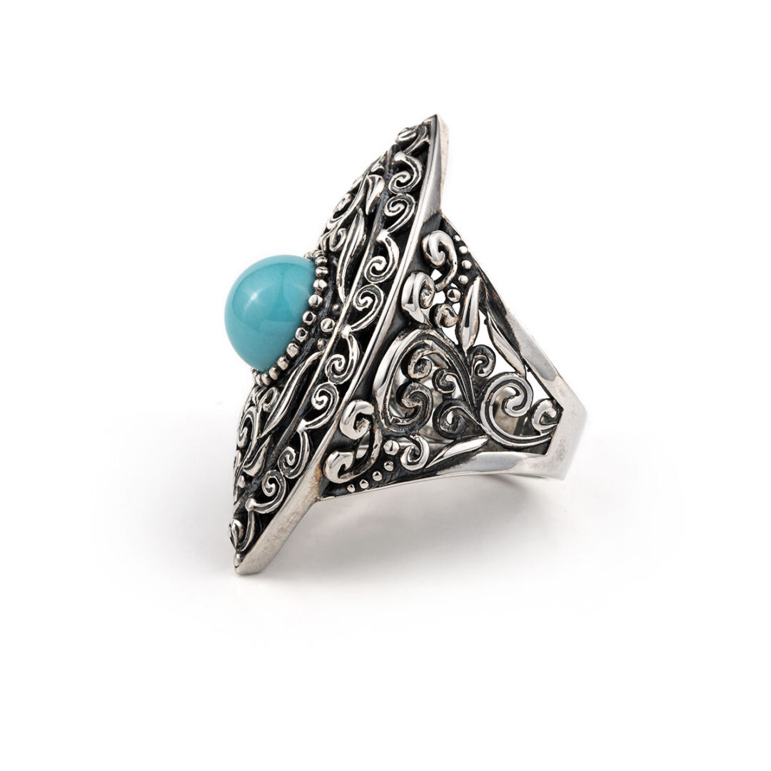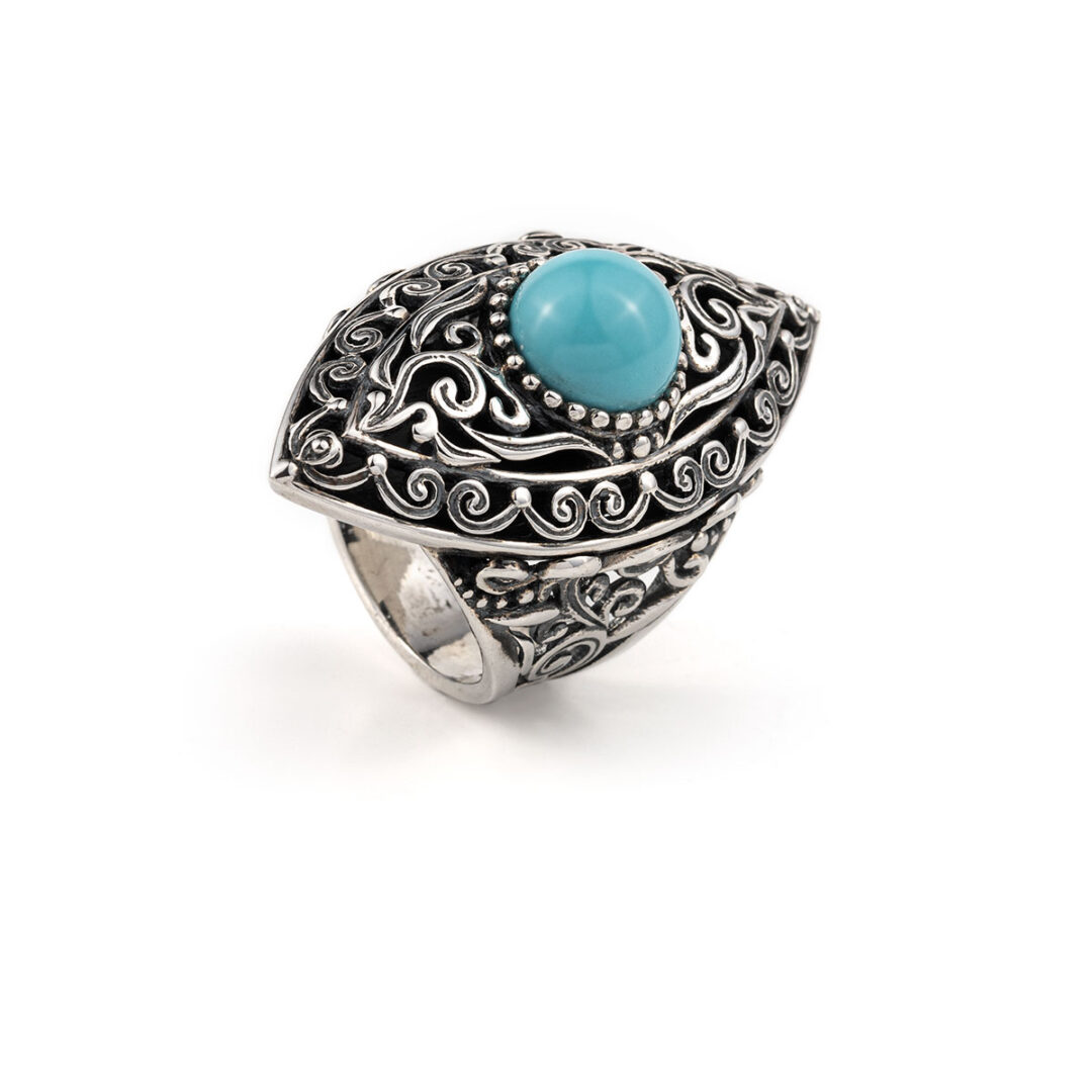 Byzantine Ring with Turquoise Sterling Silver- Yianni Jewelry
