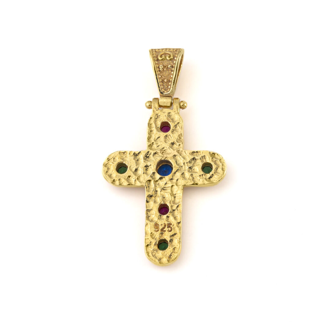 Byzantine Round Cross with Stones – 925 Sterling Silver Gold Plated