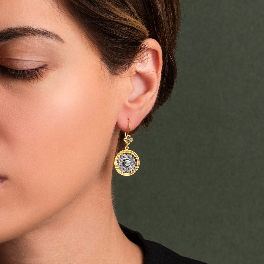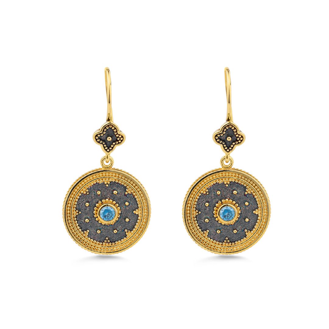 Byzantine Round Earrings with Zircon